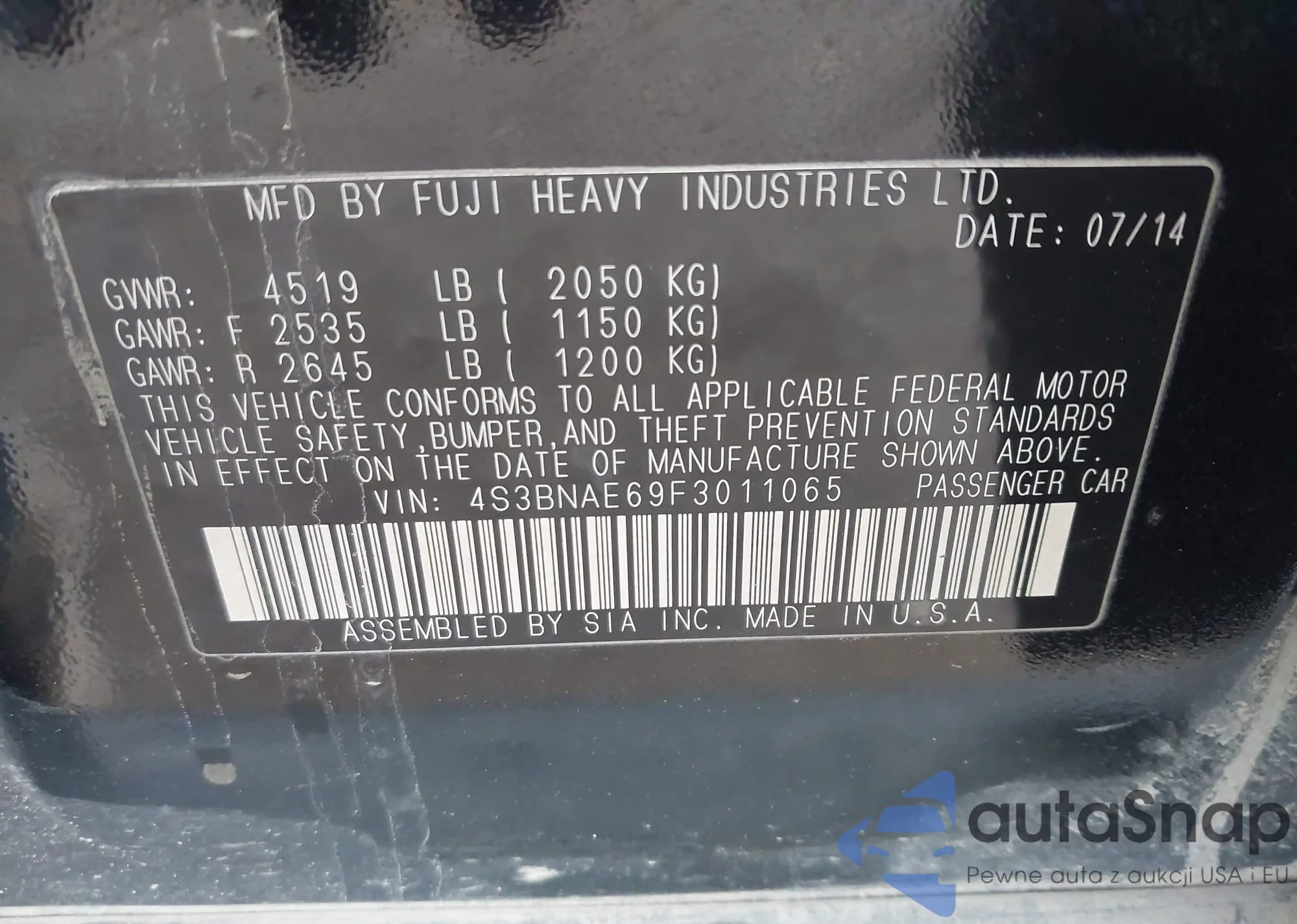 VIN: 4S3BNAE69F3011065
