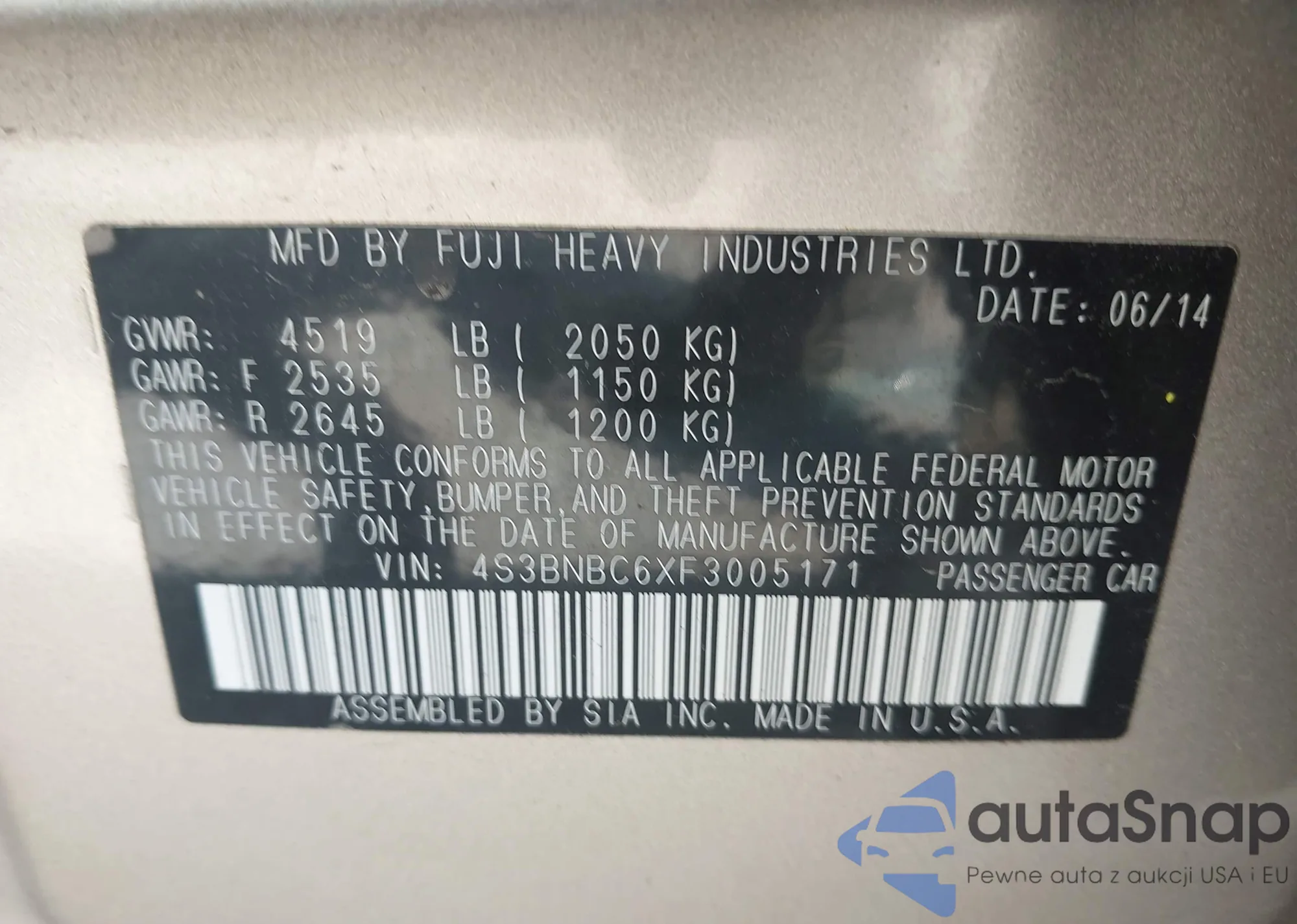 VIN: 4S3BNBC6XF3005171