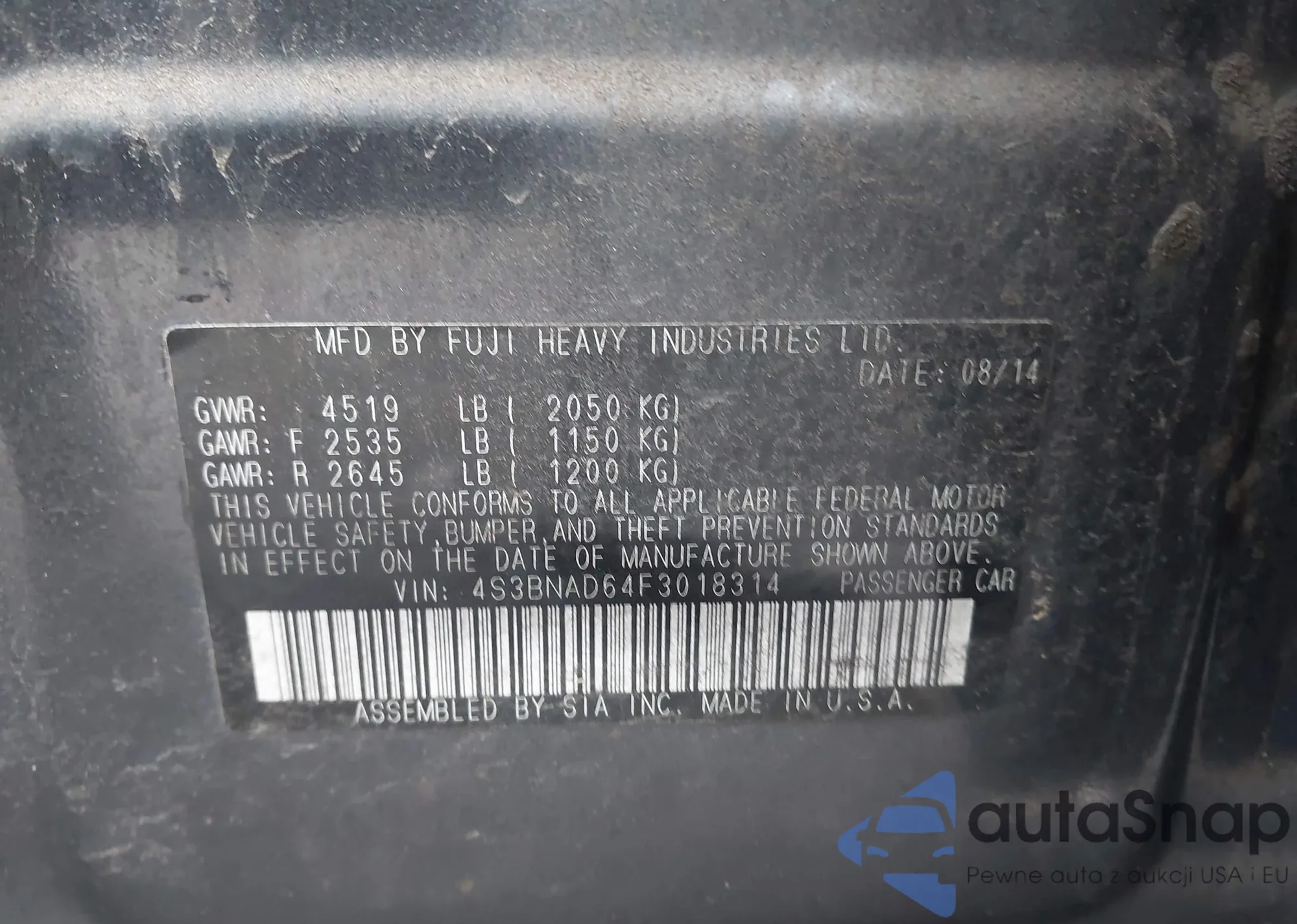 VIN: 4S3BNAD64F3018314