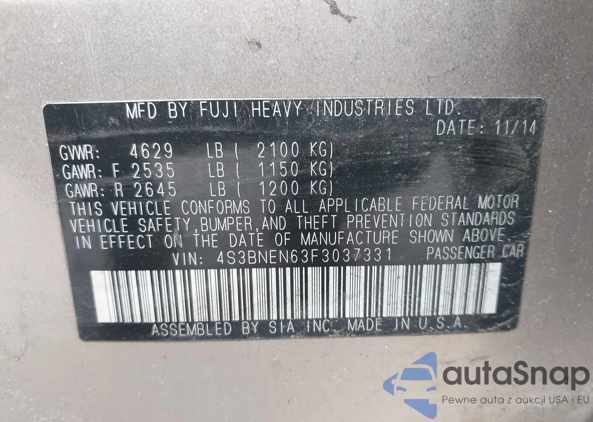 VIN: 4S3BNEN63F3037331
