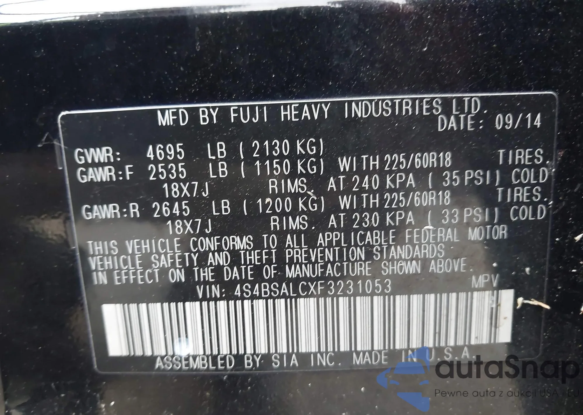VIN: 4S4BSALCXF3231053