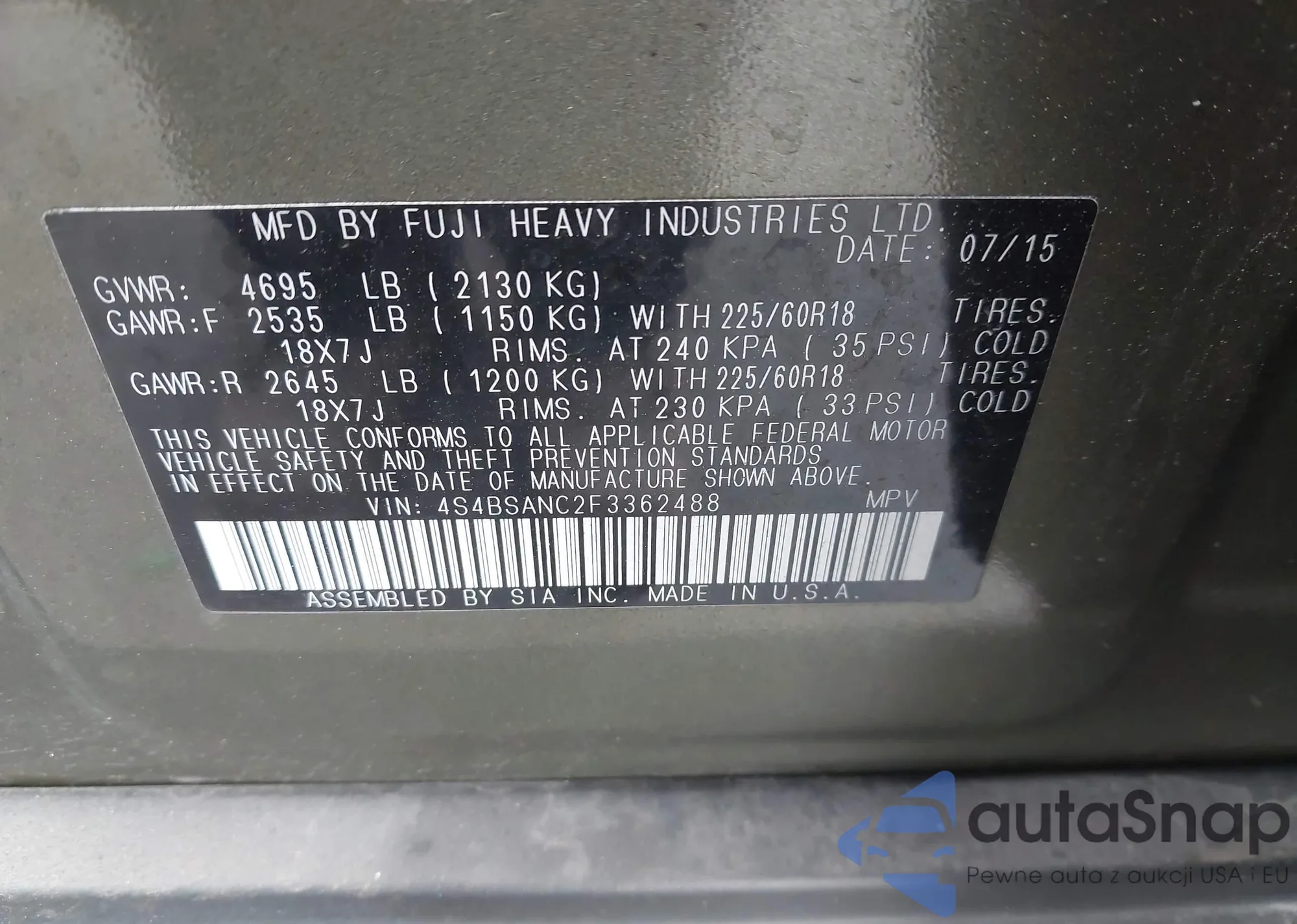VIN: 4S4BSANC2F3362488