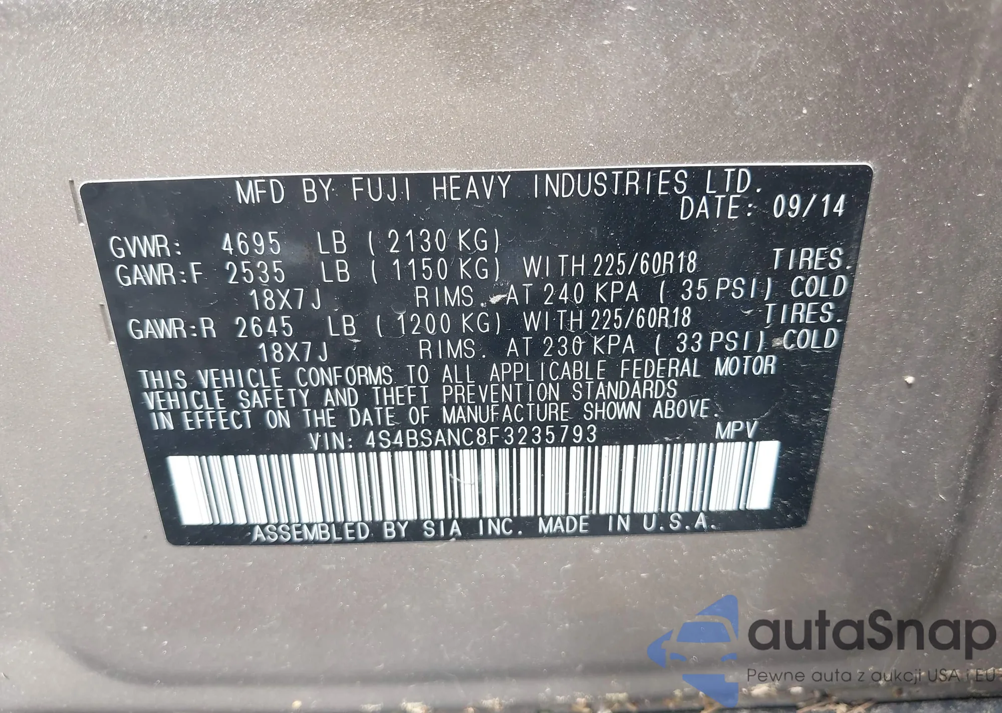 VIN: 4S4BSANC8F3235793