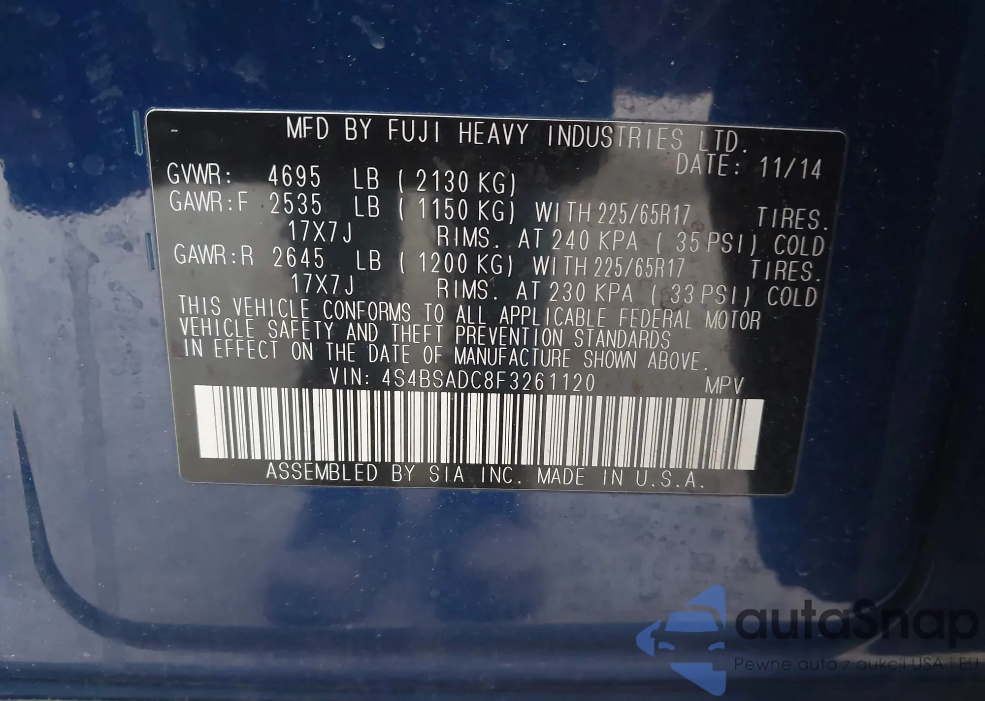 • VIN: 4S4BSADC8F3261120