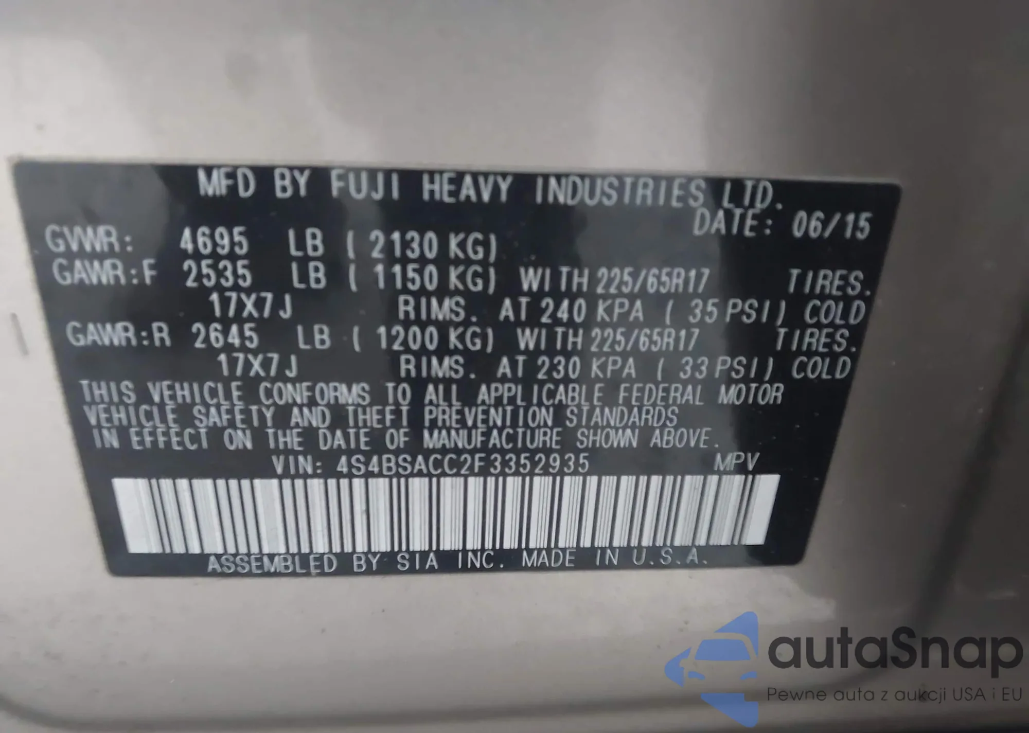 • VIN: 4S4BSACC2F3352935