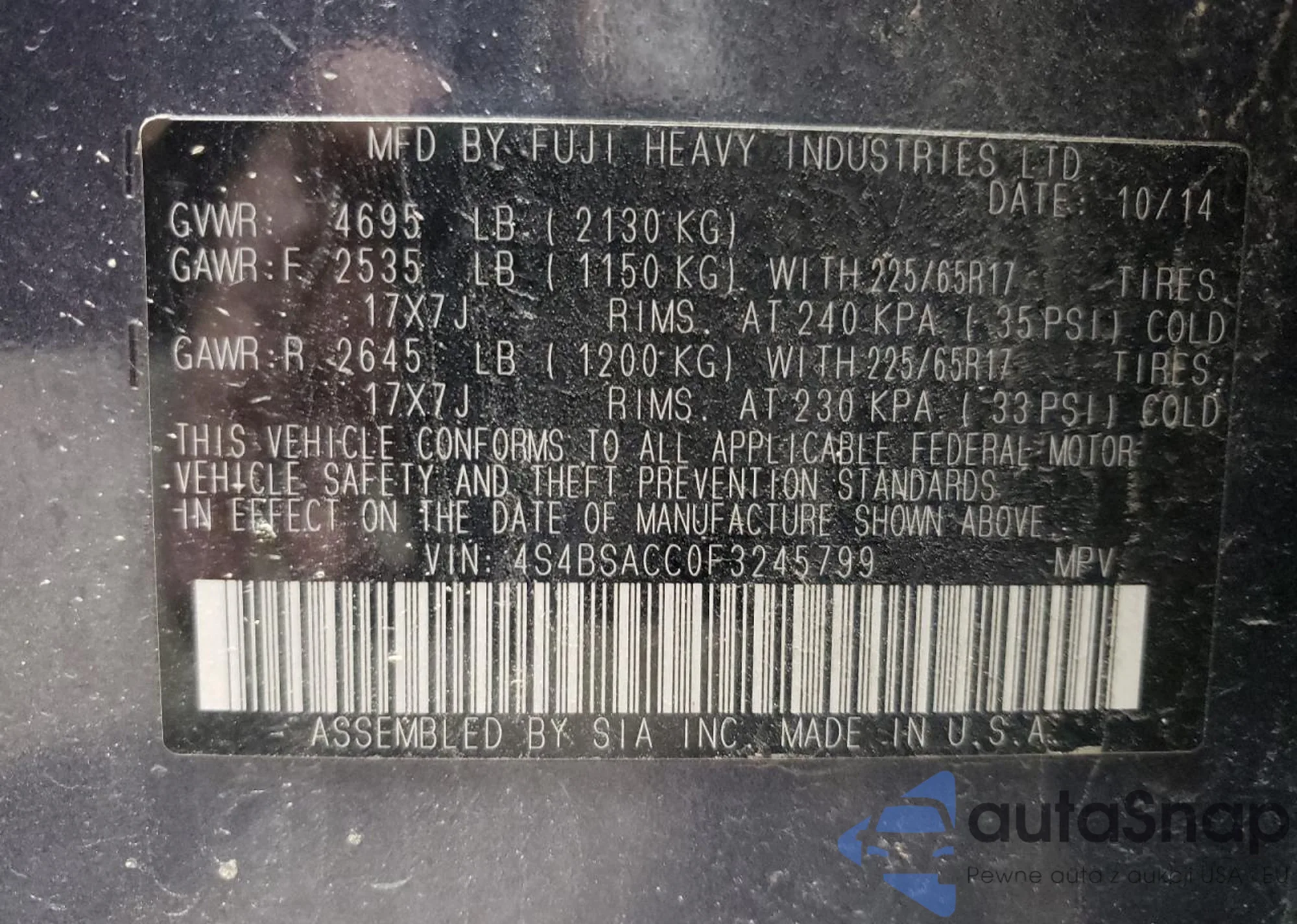 VIN: 4S4BSACC0F3245799