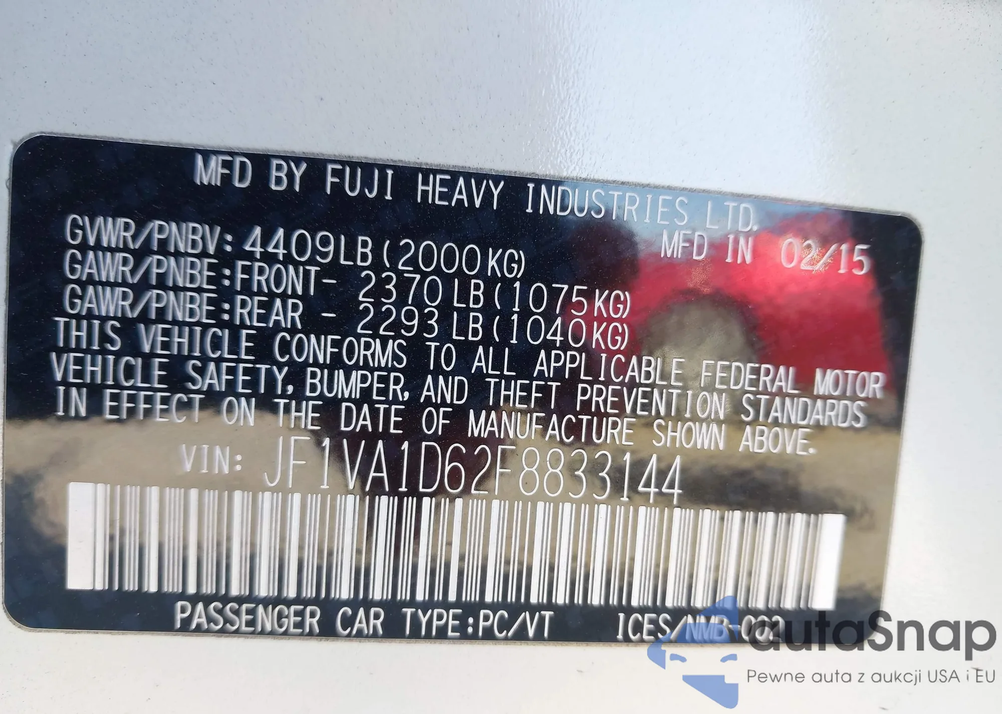 • VIN: JF1VA1D62F8833144