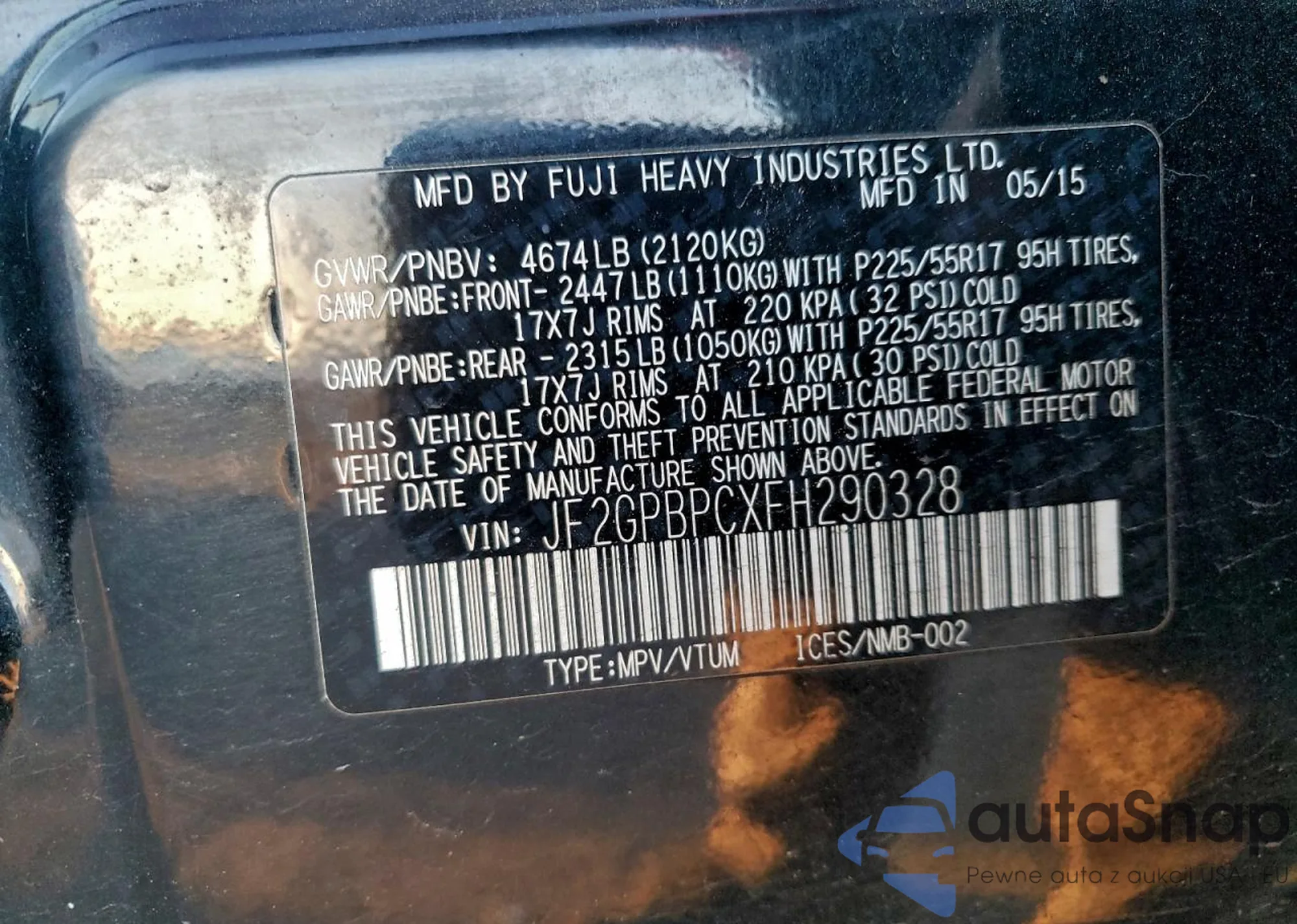 VIN: JF2GPBPCXFH290328