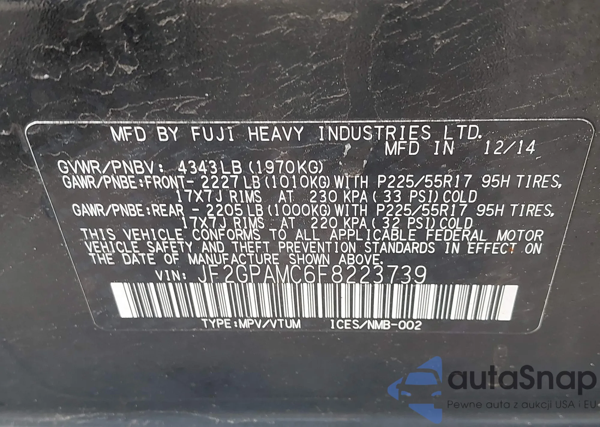 VIN: JF2GPAMC6F8223739