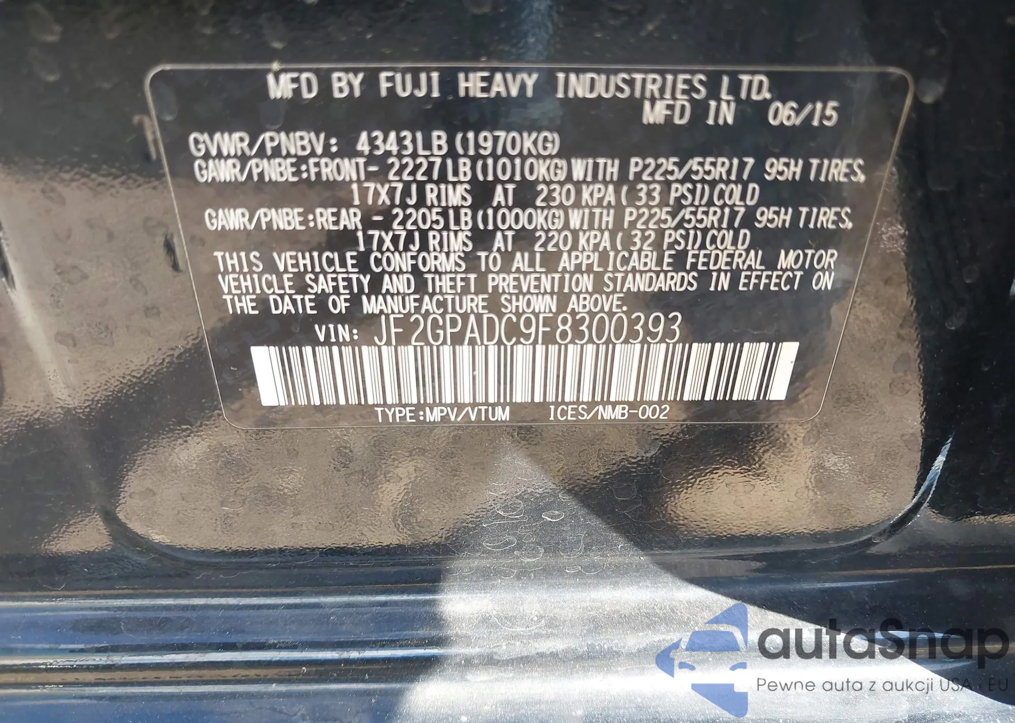 VIN: JF2GPADC9F8300393