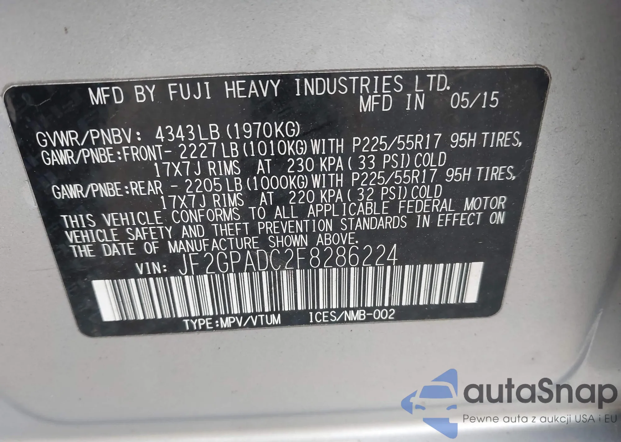 VIN: JF2GPADC2F8286224