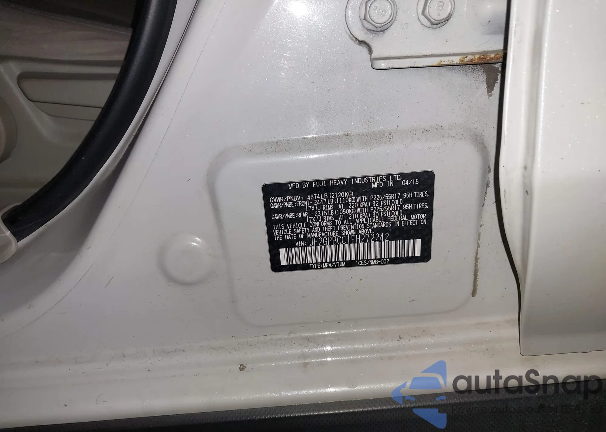 VIN: JF2GPBCC1FH272242