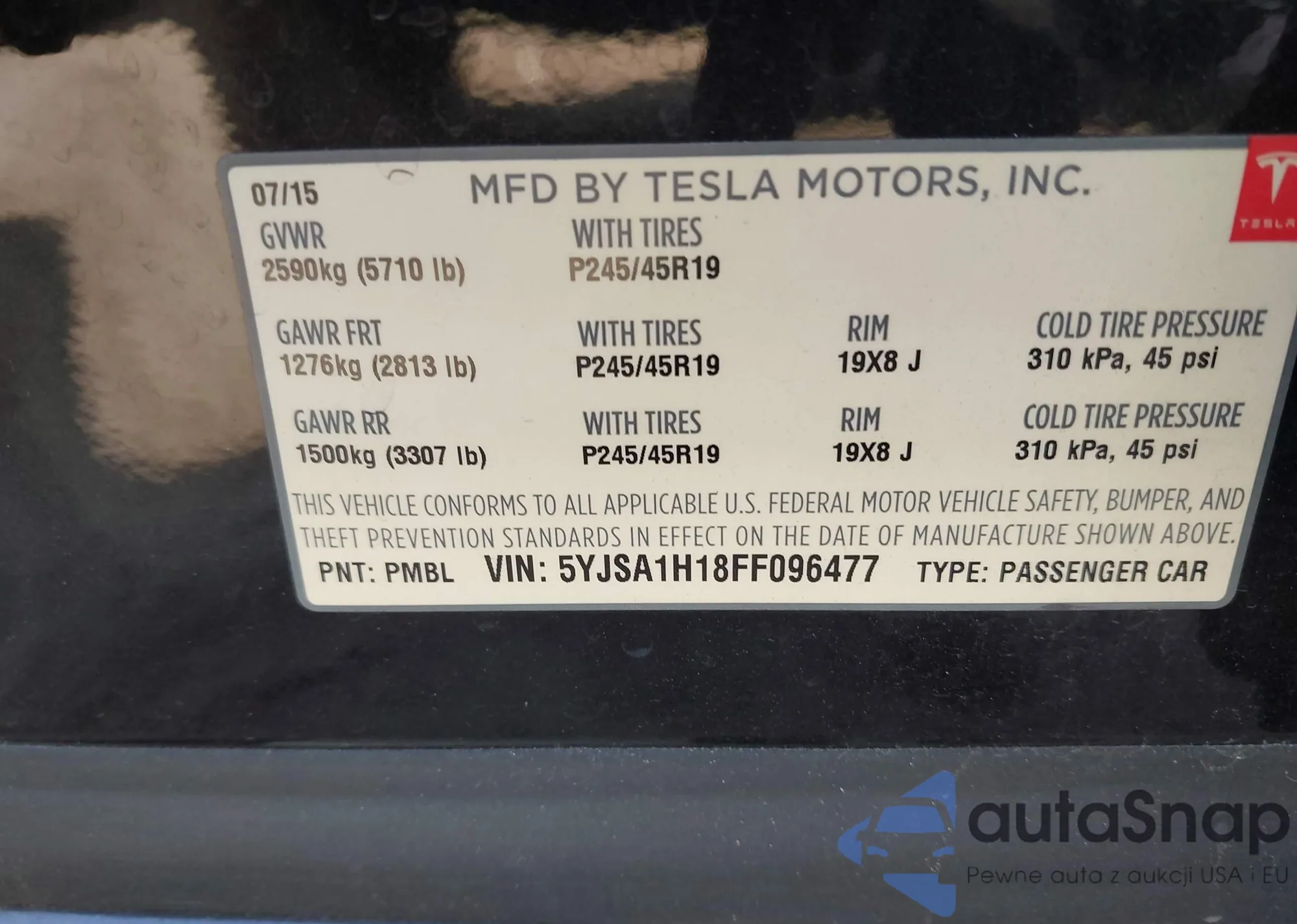 The car Tesla Model S 2015 (VIN 5YJSA1H18FF096477) has not been auctioned before. The documents are clean, and the mileage matches or is below the market average. Sold by an insurance company – we recommend purchase. Delivery to the port will take approx. 6–8 weeks.