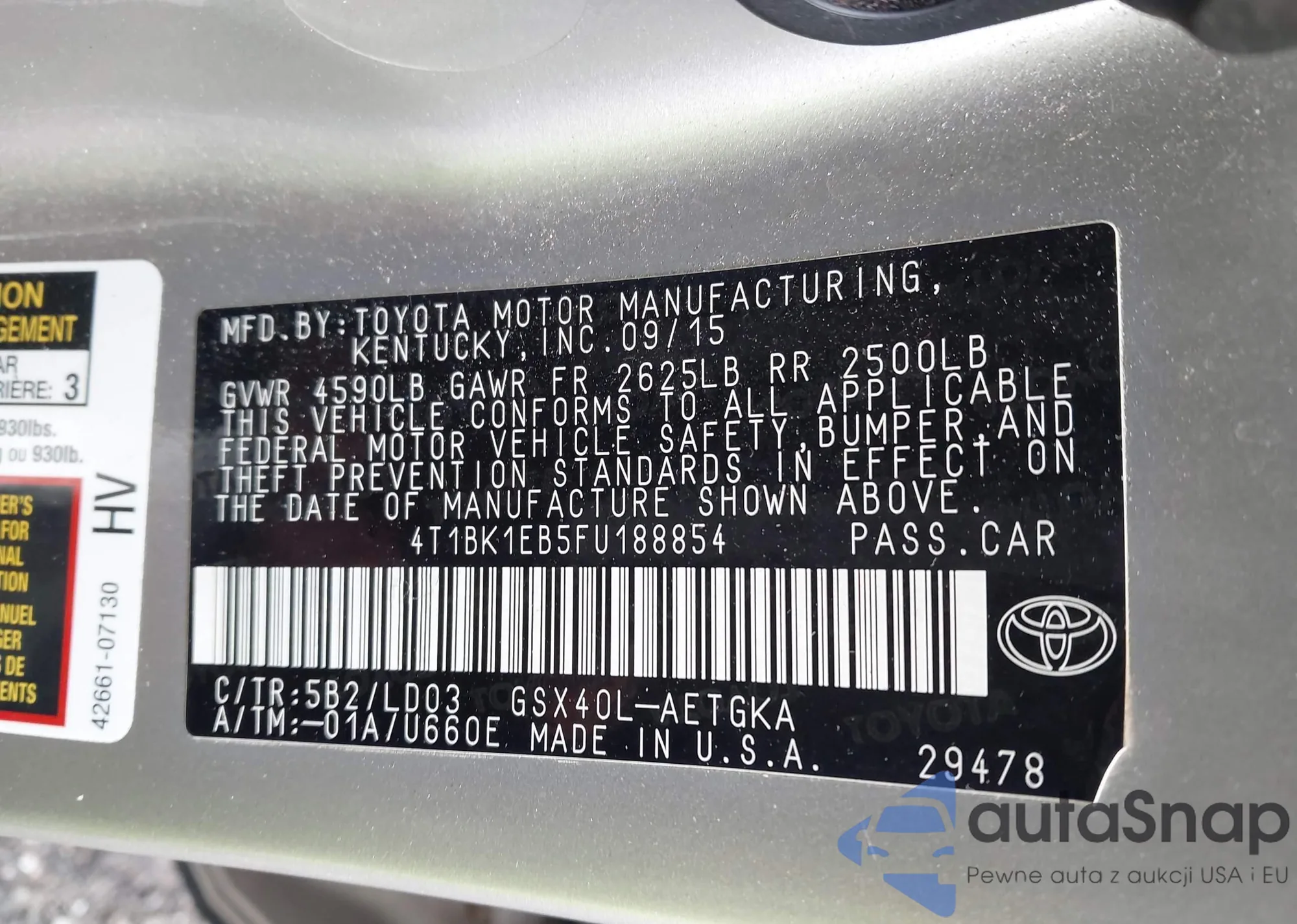 VIN: 4T1BK1EB5FU188854