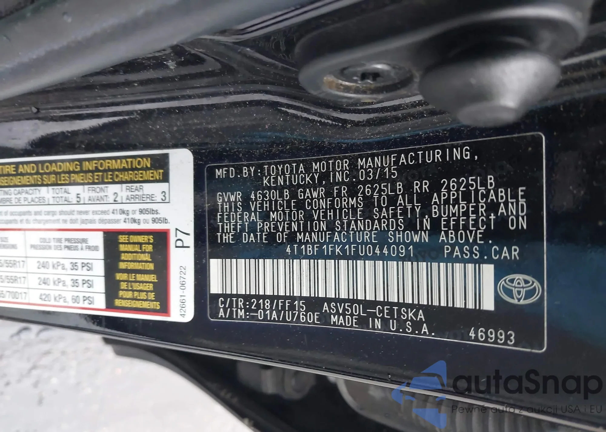 VIN: 4T1BF1FK1FU044091