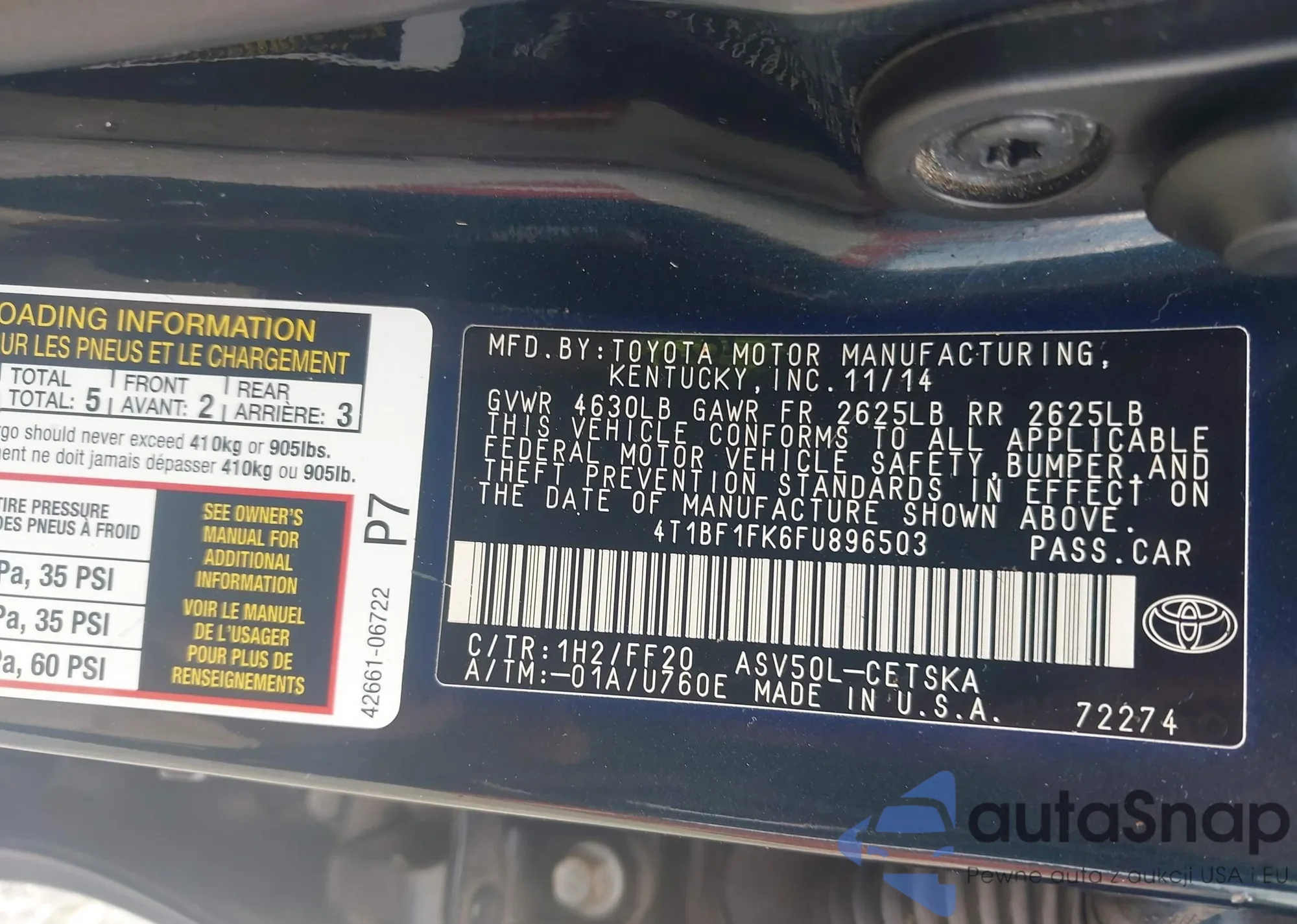 VIN: 4T1BF1FK6FU896503