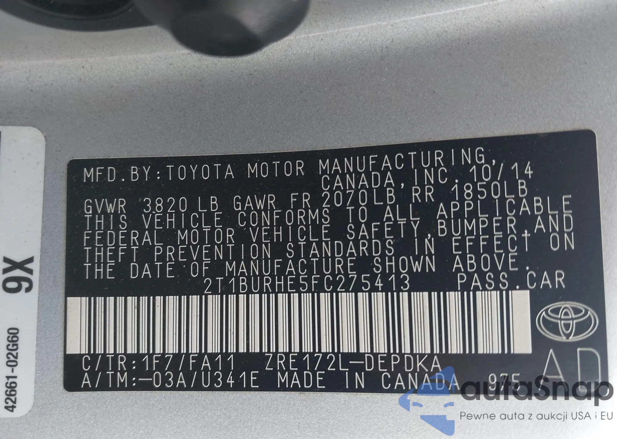 VIN: 2T1BURHE5FC275413