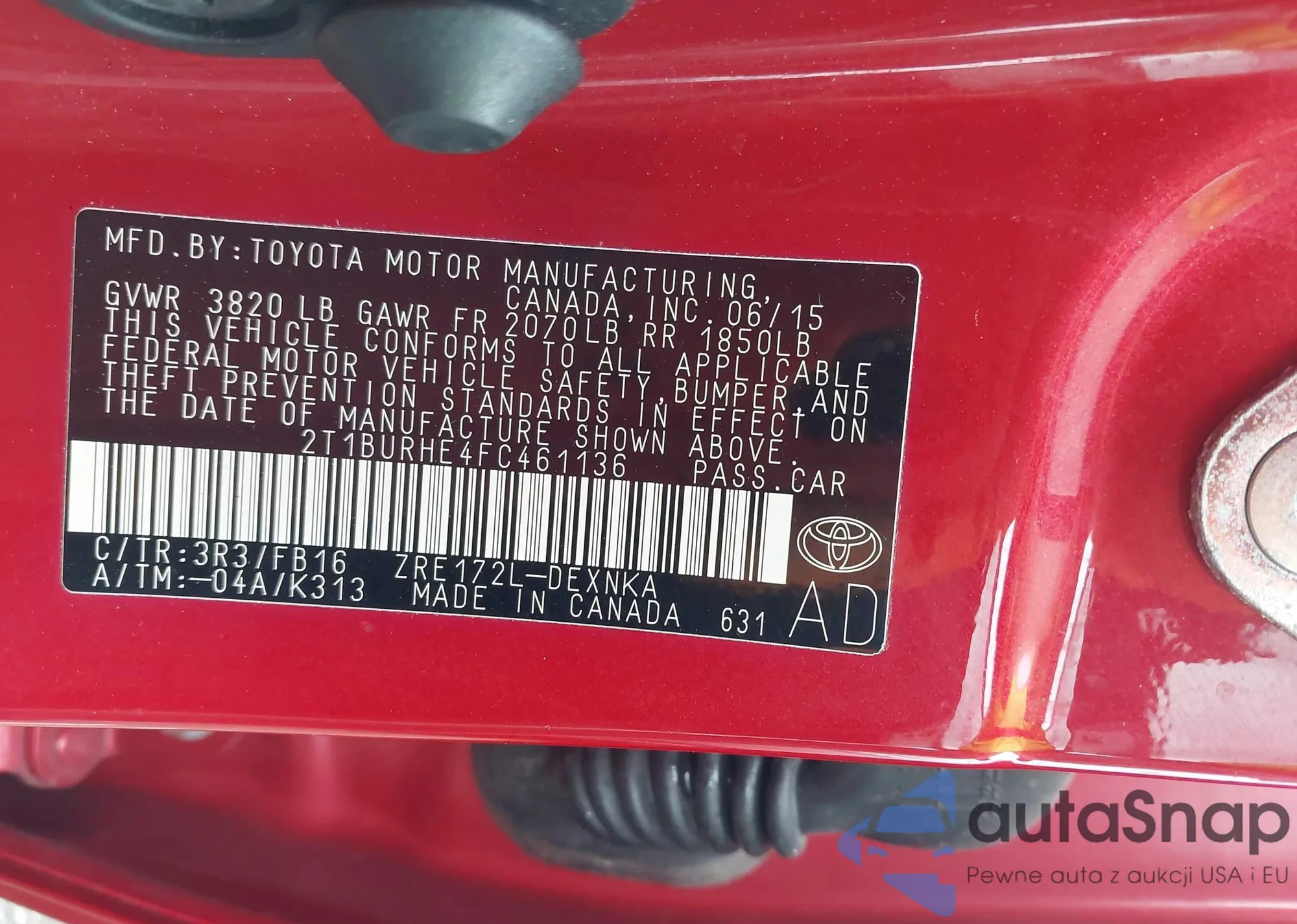 • VIN: 2T1BURHE4FC461136