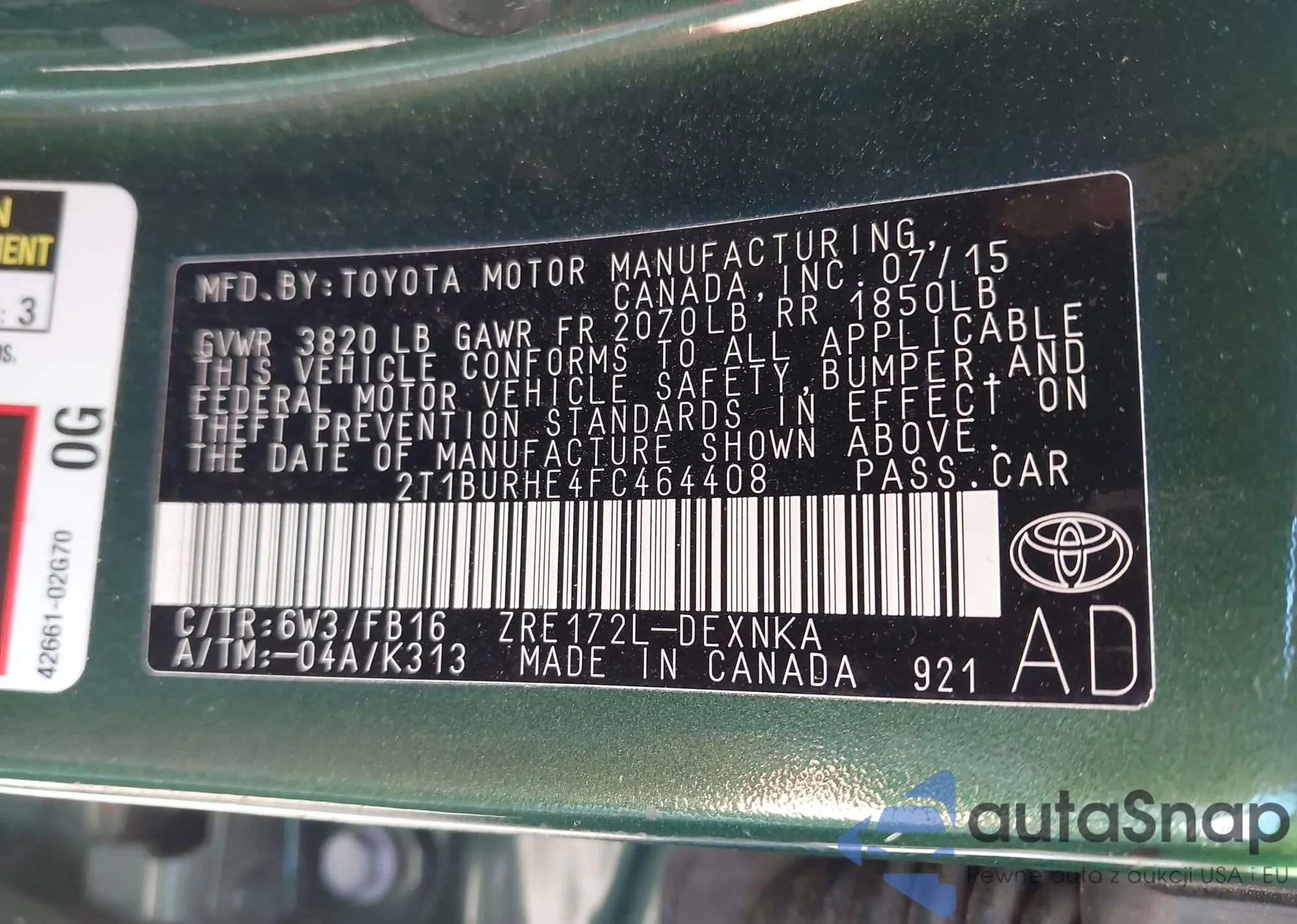 VIN: 2T1BURHE4FC464408