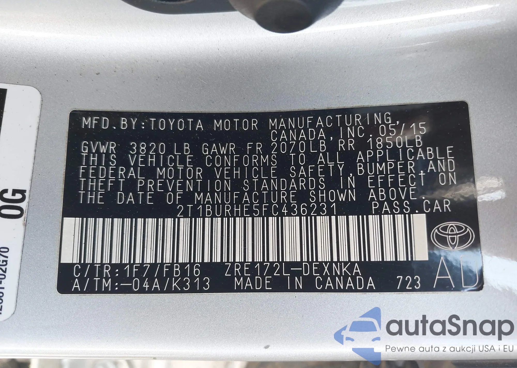 VIN: 2T1BURHE5FC436231