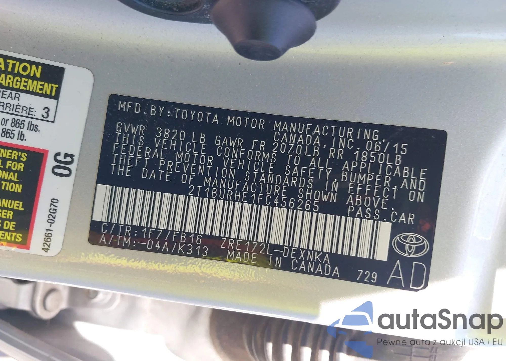 VIN: 2T1BURHE1FC456265