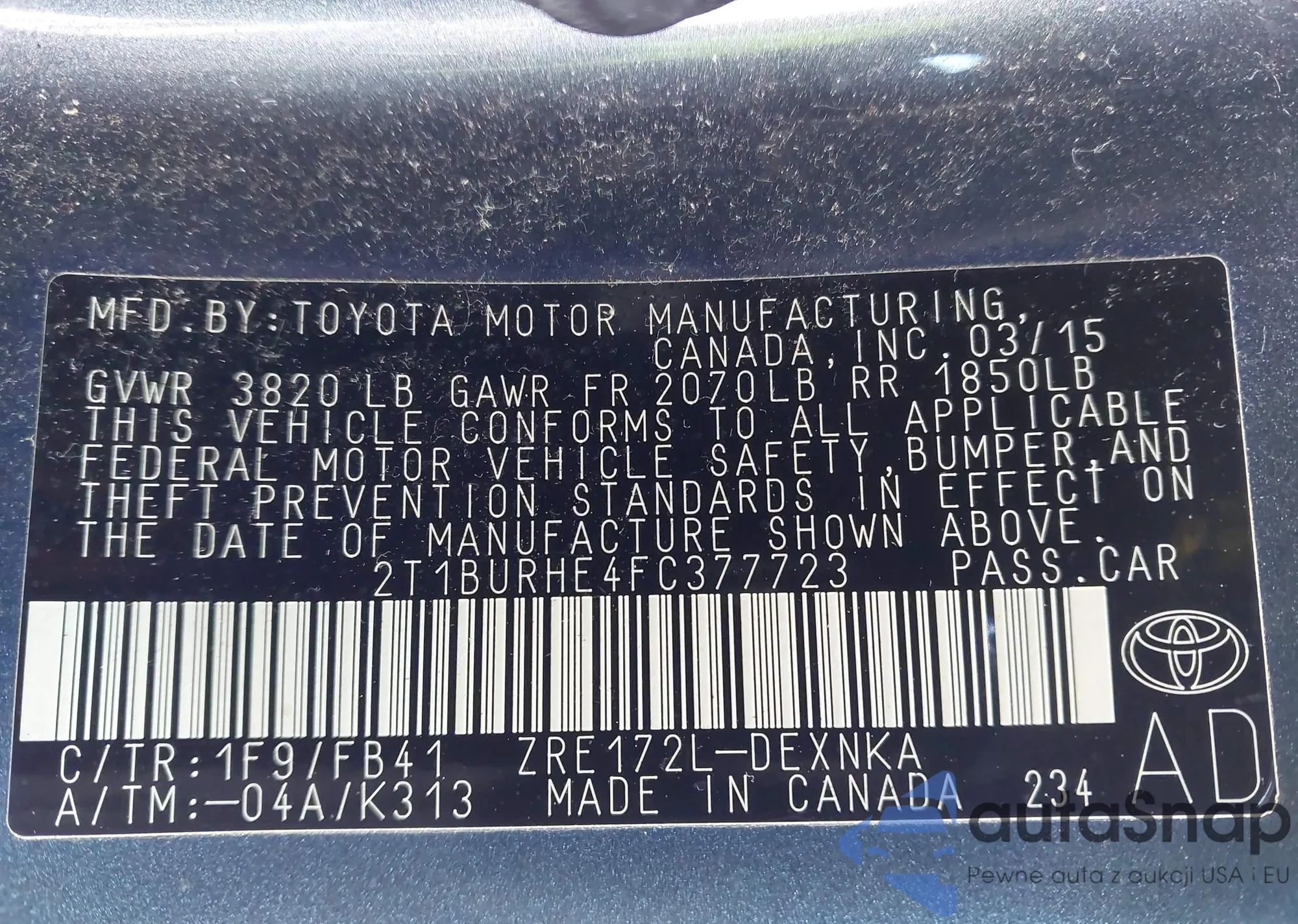 VIN: 2T1BURHE4FC377723