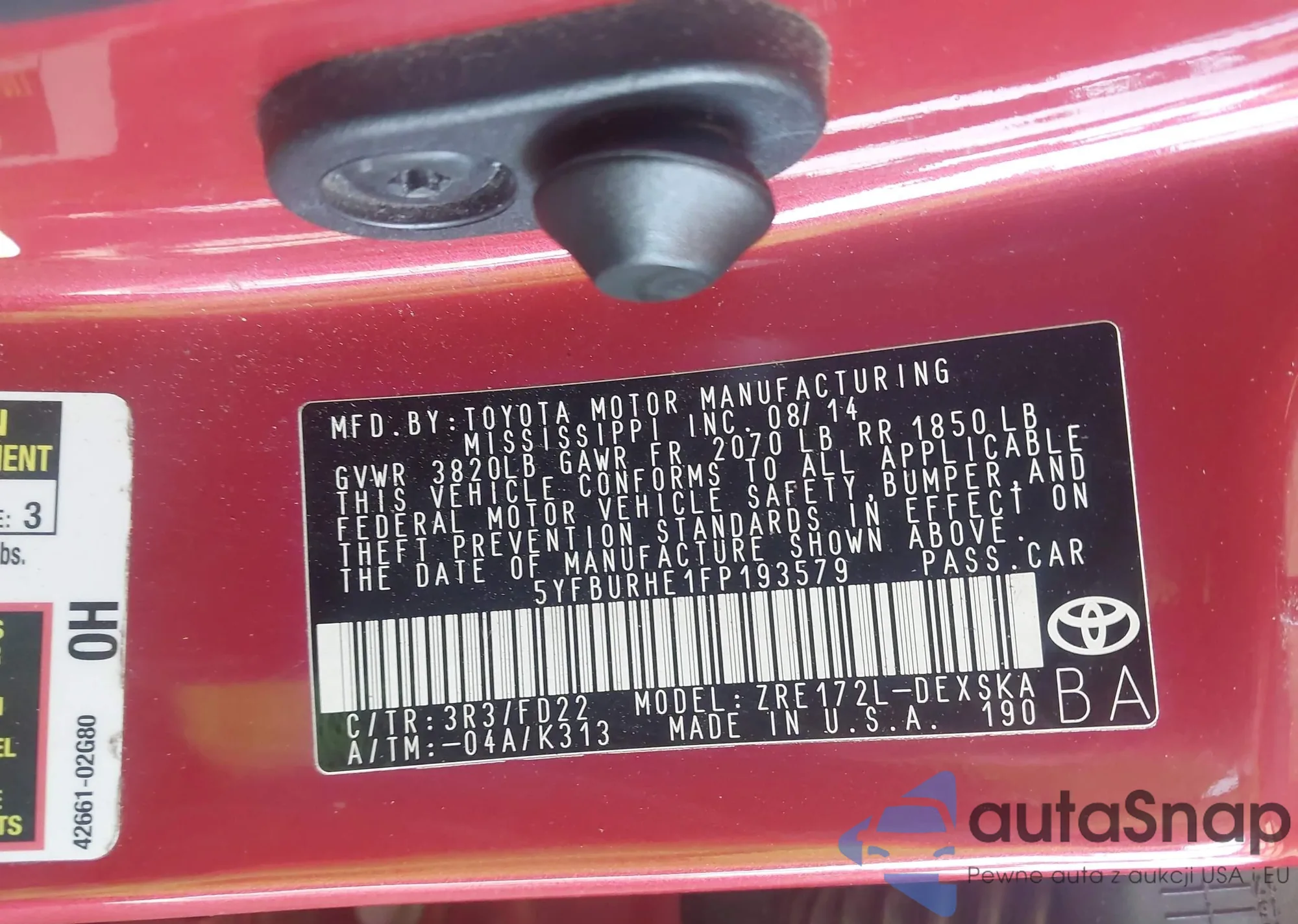 Toyota Corolla 2015 – Vehicle History (Sold at IAAI)