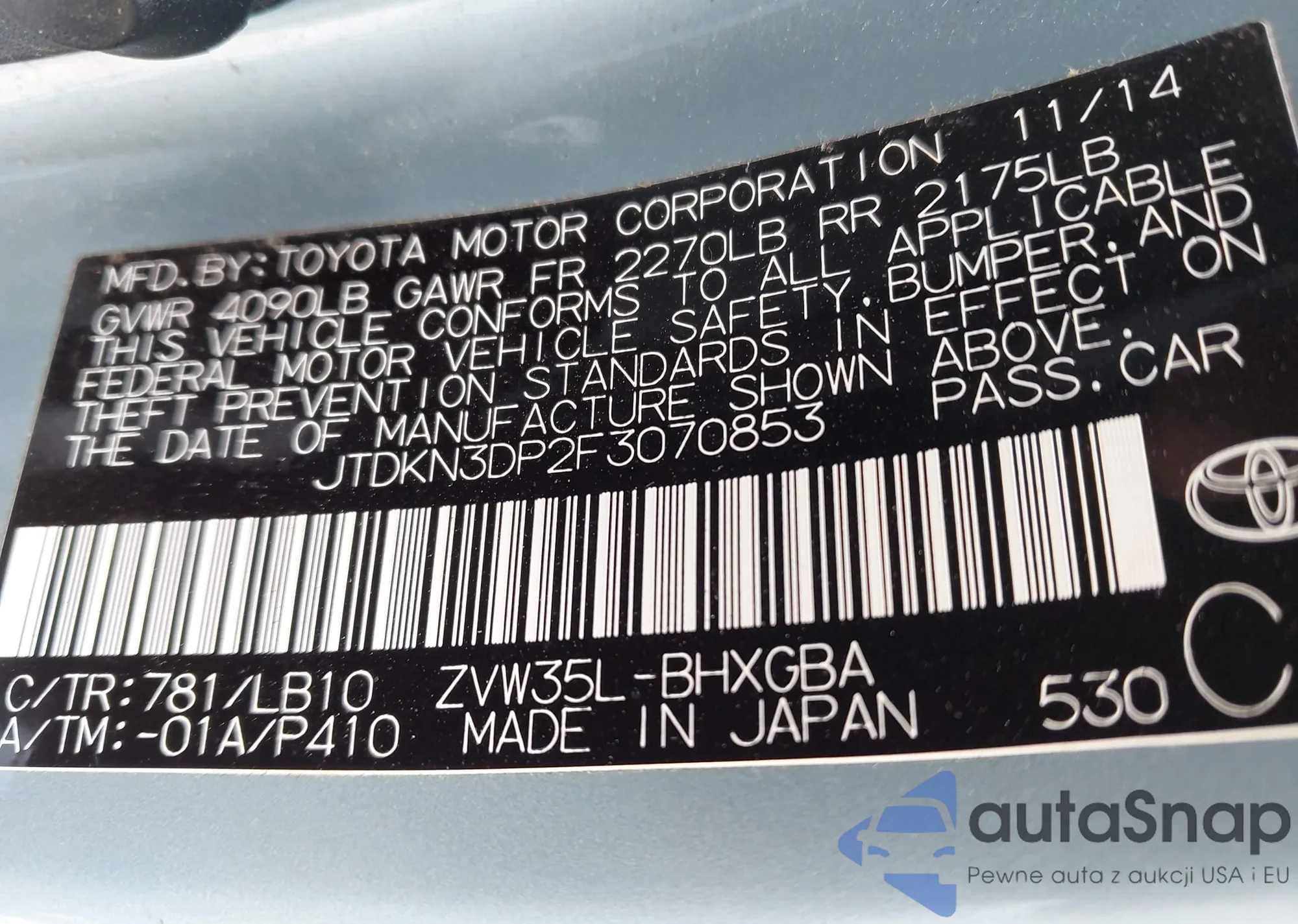 VIN: JTDKN3DP2F3070853