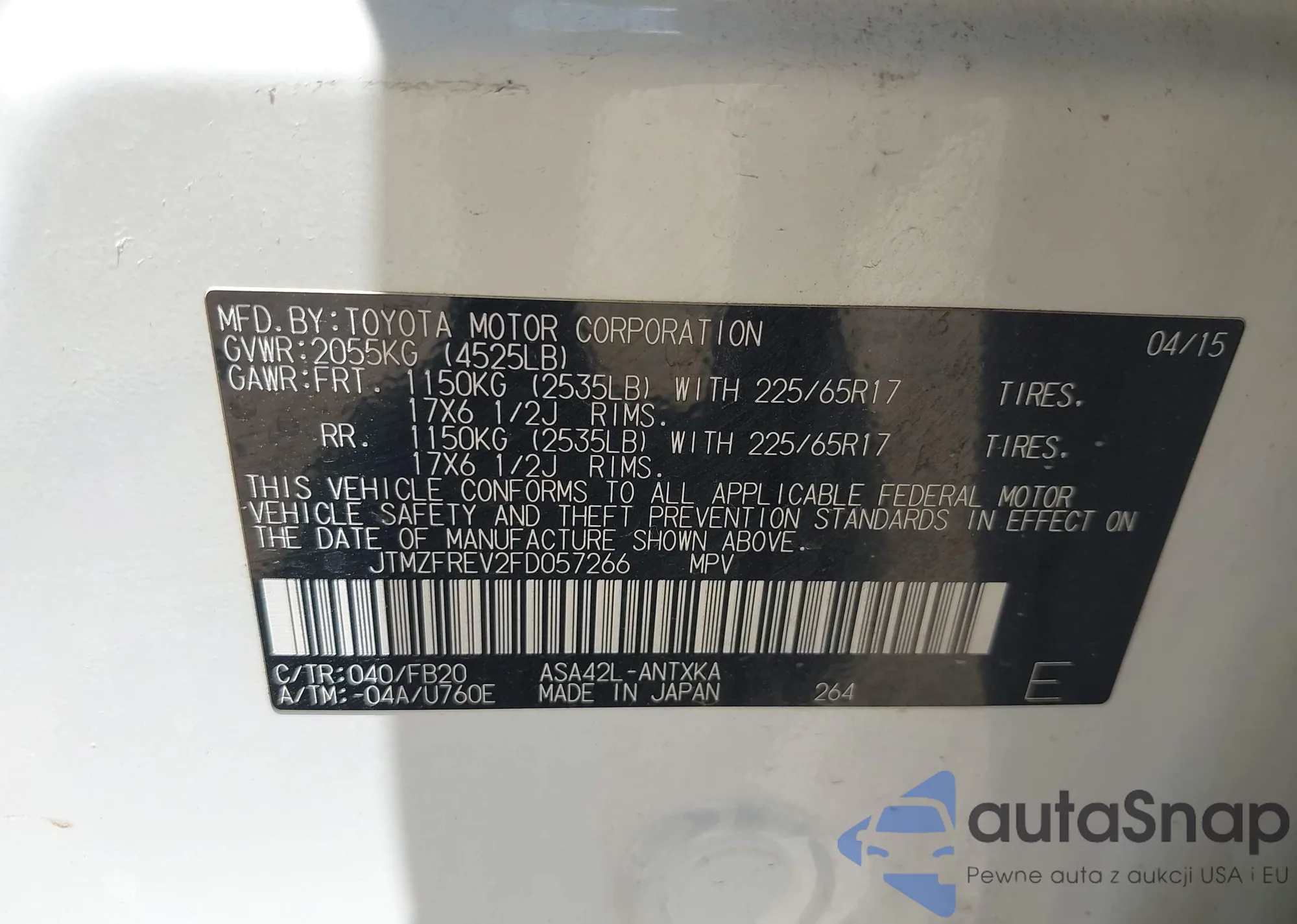 VIN: JTMZFREV2FD057266
