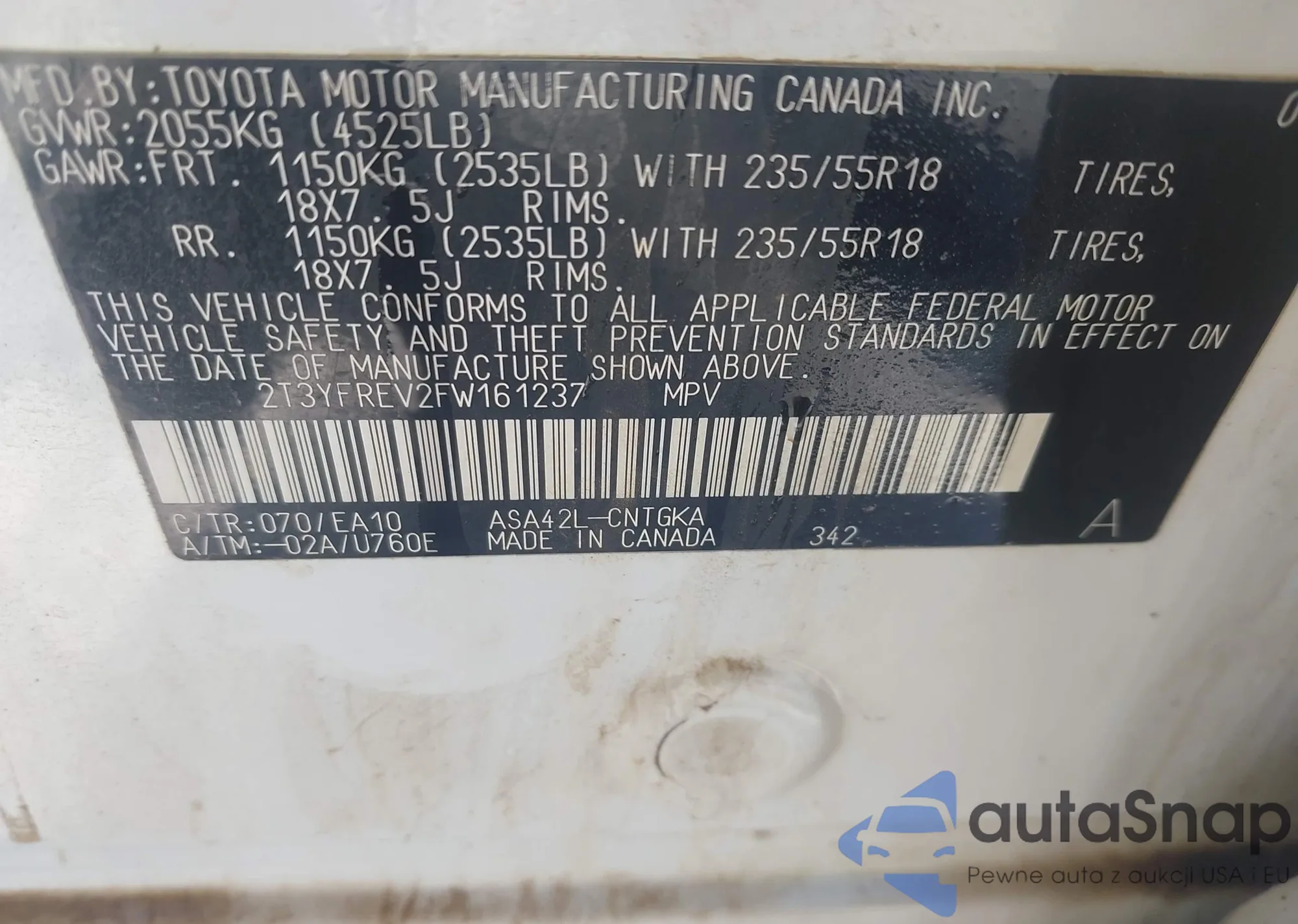 • VIN: 2T3YFREV2FW161237