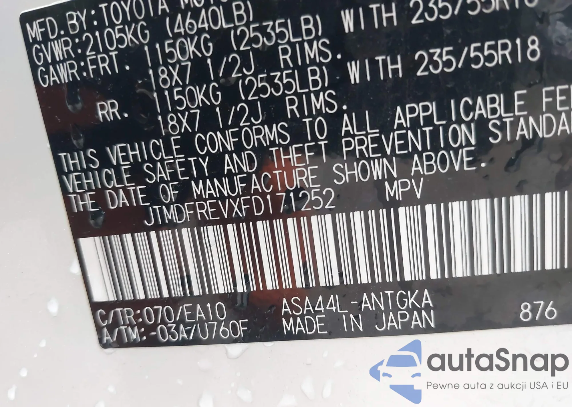 • VIN: JTMDFREVXFD171252
