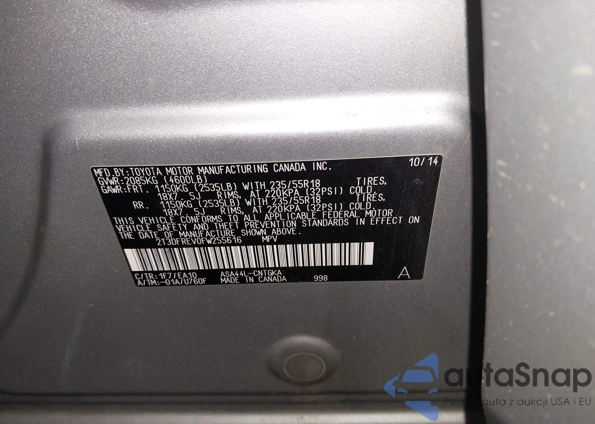 VIN: 2T3DFREV0FW255616