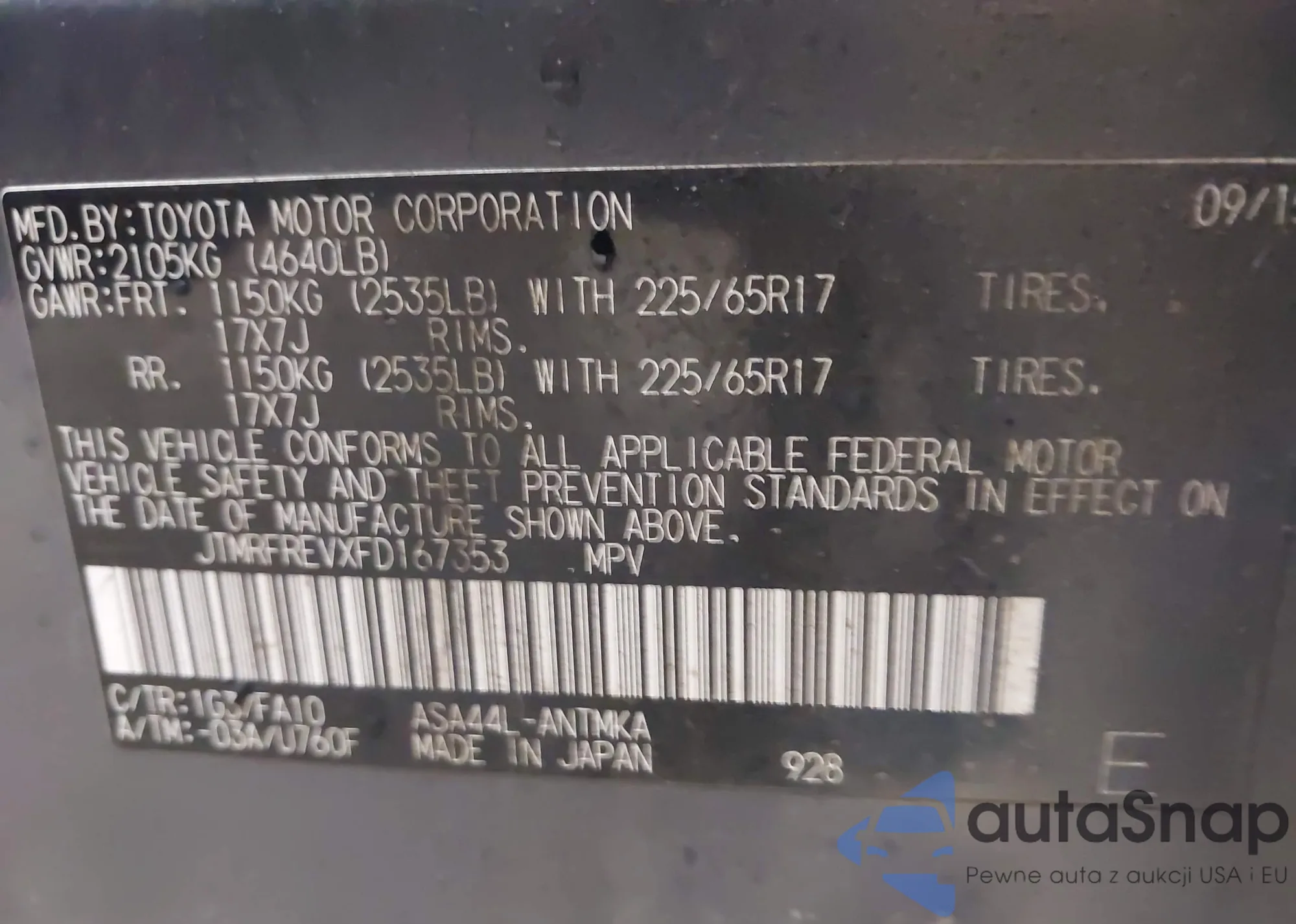 VIN: JTMRFREVXFD167353