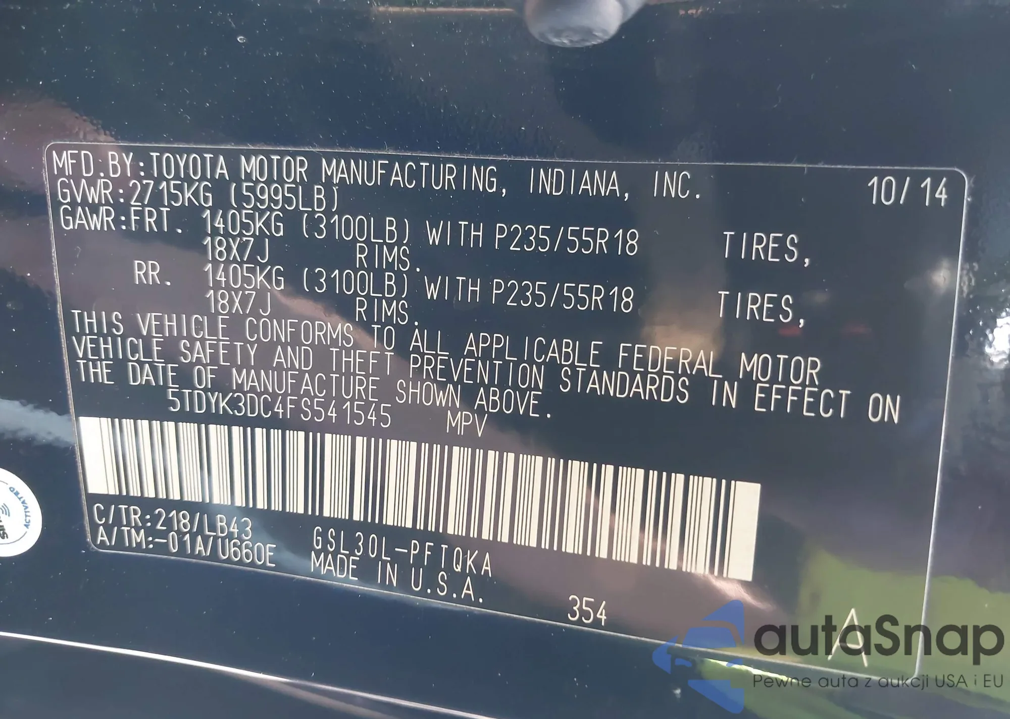 • VIN: 5TDYK3DC4FS541545