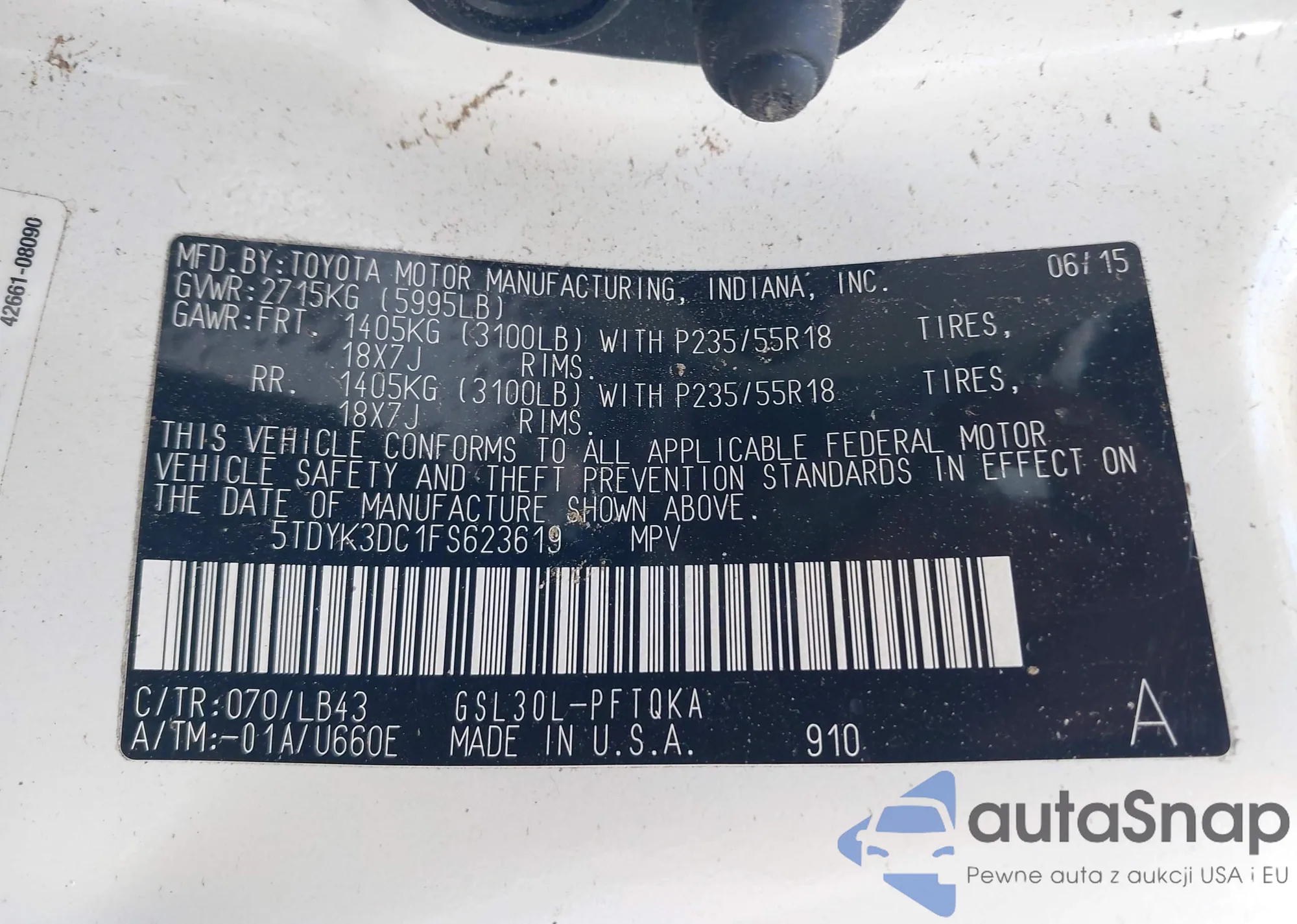 • VIN: 5TDYK3DC1FS623619
