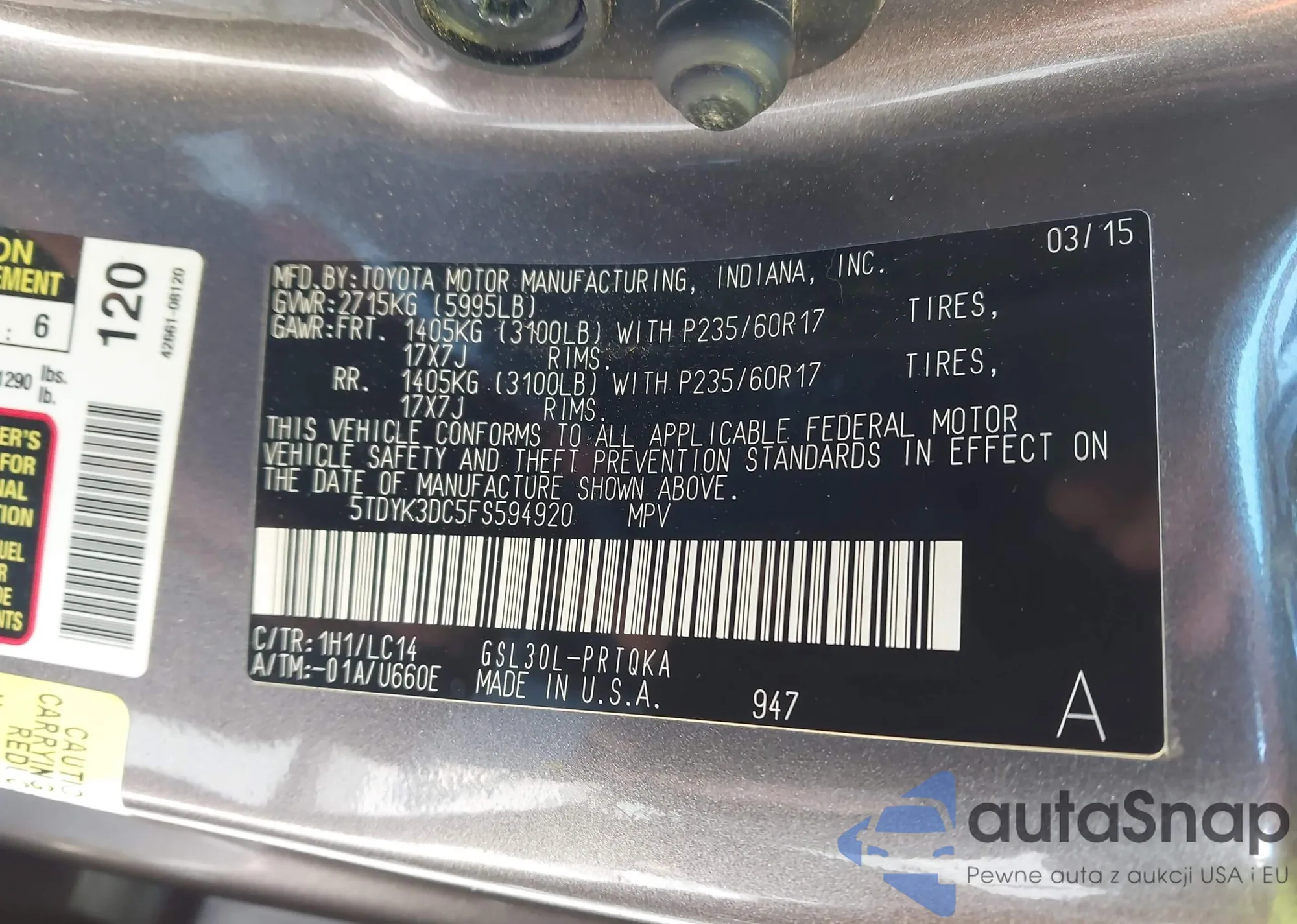 VIN: 5TDYK3DC5FS594920