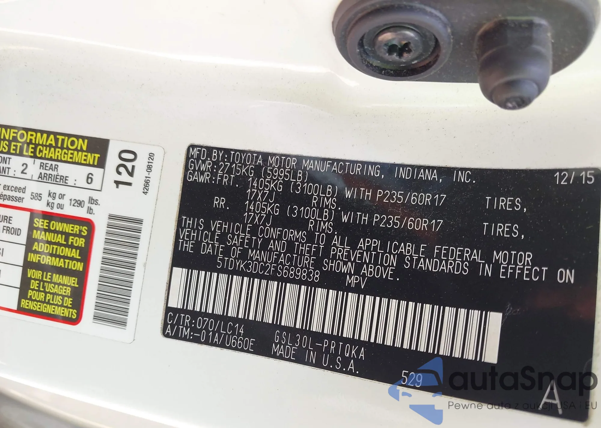VIN: 5TDYK3DC2FS689838