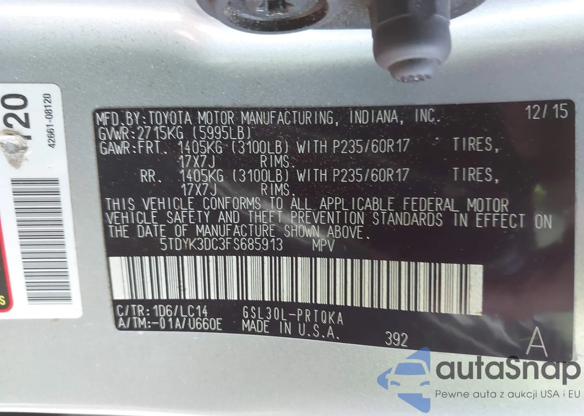 VIN: 5TDYK3DC3FS685913