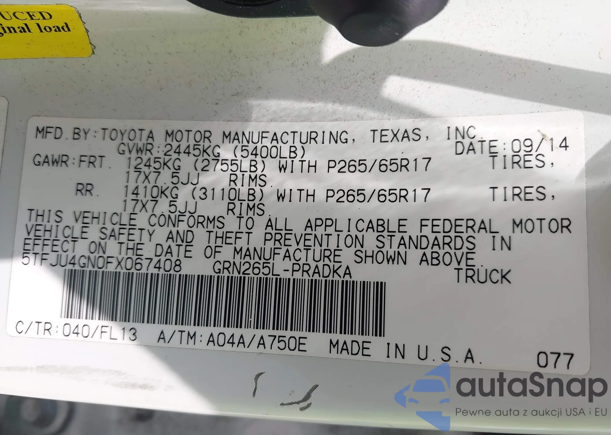 VIN: 5TFJU4GN0FX067408
