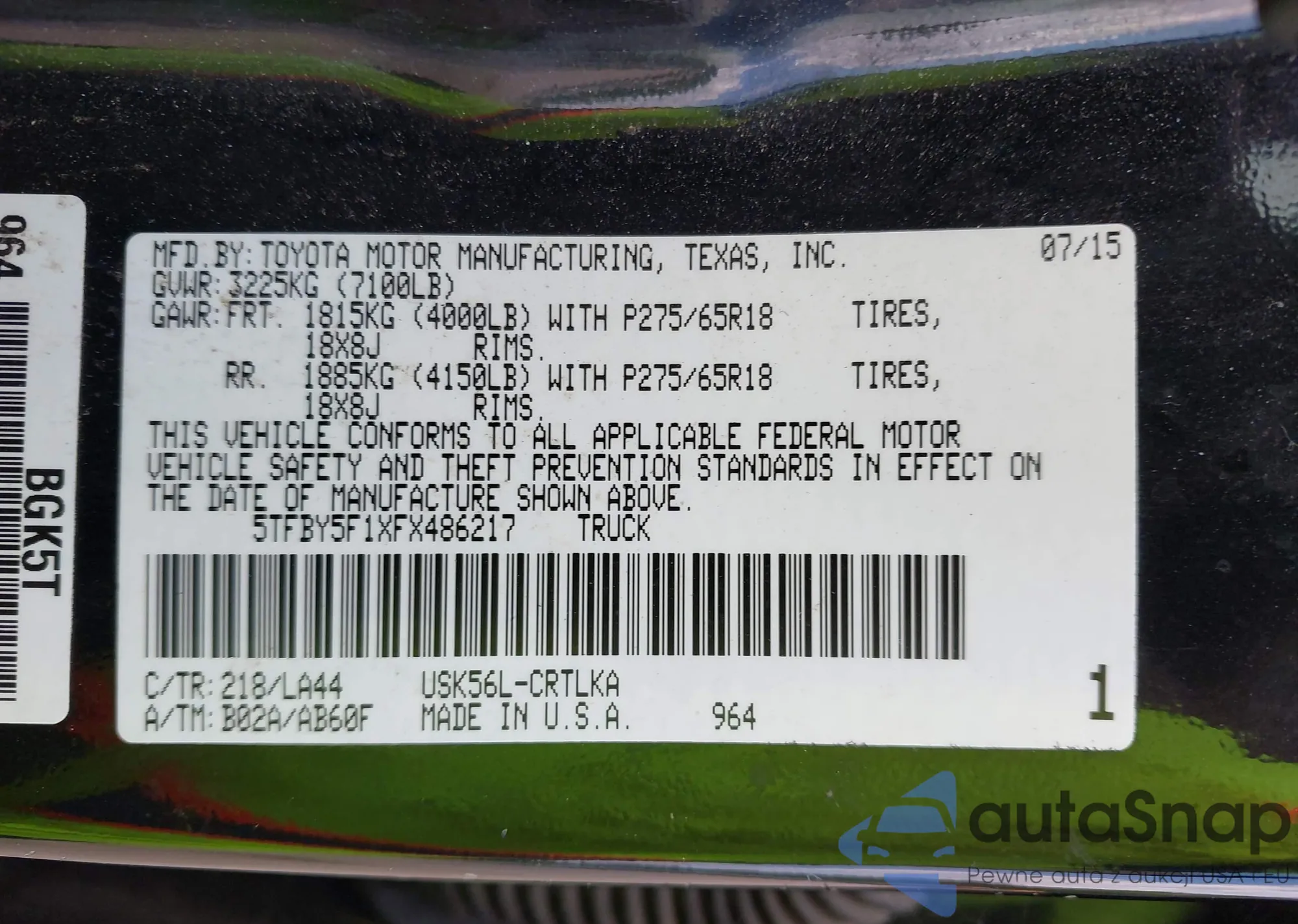 VIN: 5TFBY5F1XFX486217