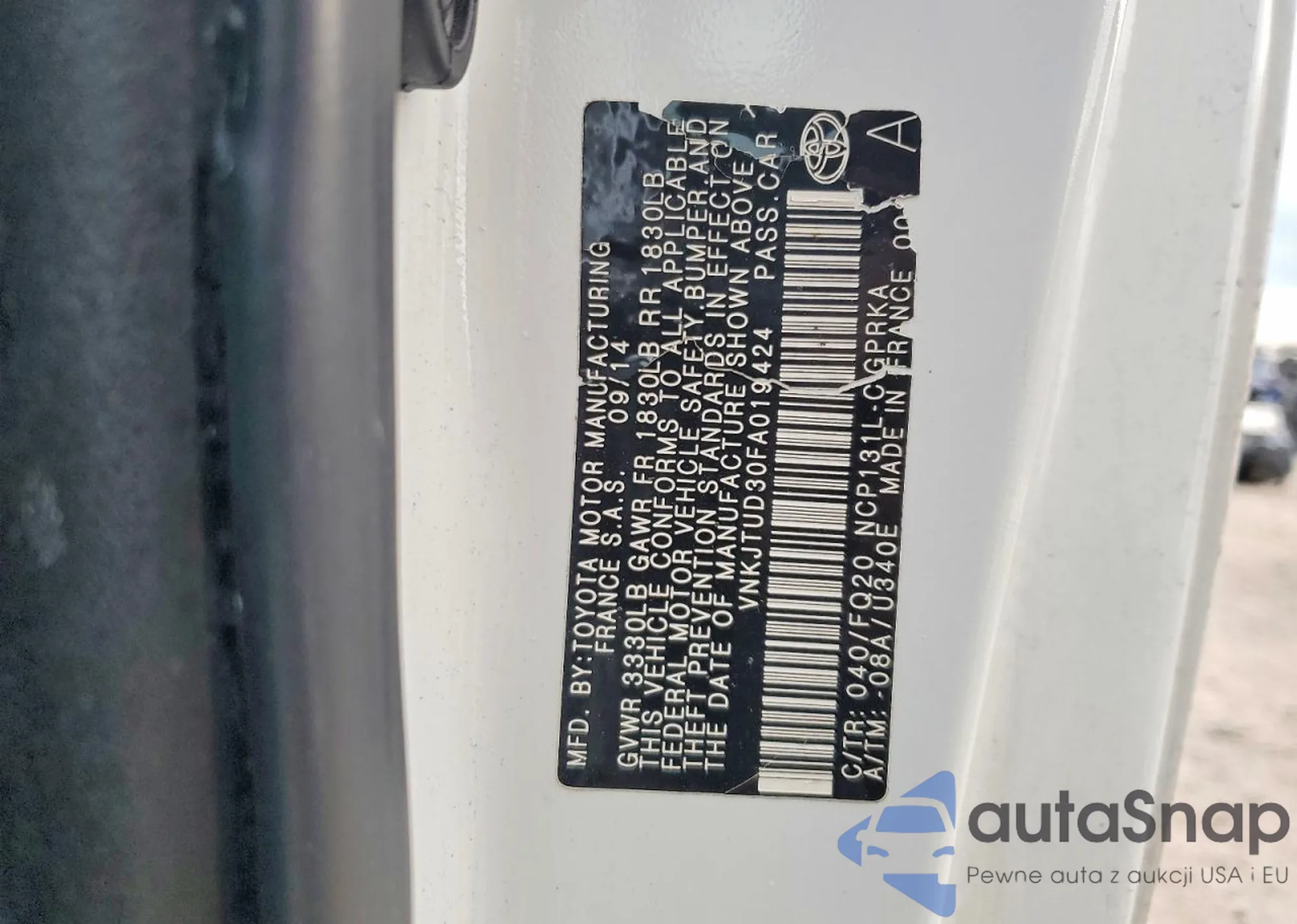 The car Toyota Yaris 2015 (VIN VNKJTUD30FA019424) is sold by an unverified seller. We recommend checking the Carfax report and confirming registration possibilities before purchase.