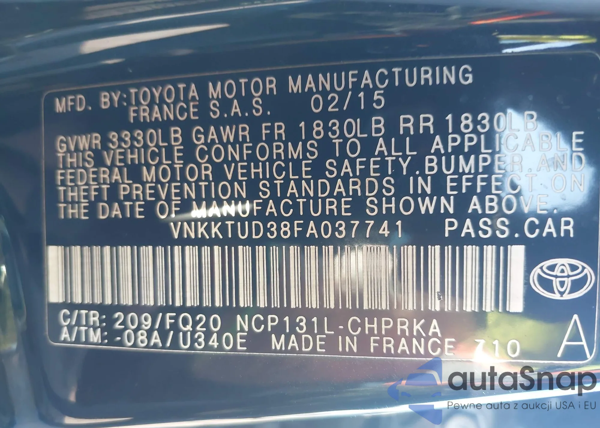 VIN: VNKKTUD38FA037741