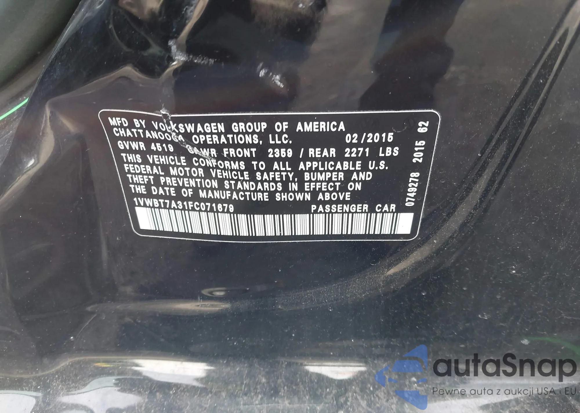 The car Volkswagen Passat 2015 (VIN 1VWBT7A31FC071679) has not been auctioned before. The documents are clean, and the mileage matches or is below the market average. Sold by an insurance company – we recommend purchase. Delivery to the port will take approx. 6–8 weeks.