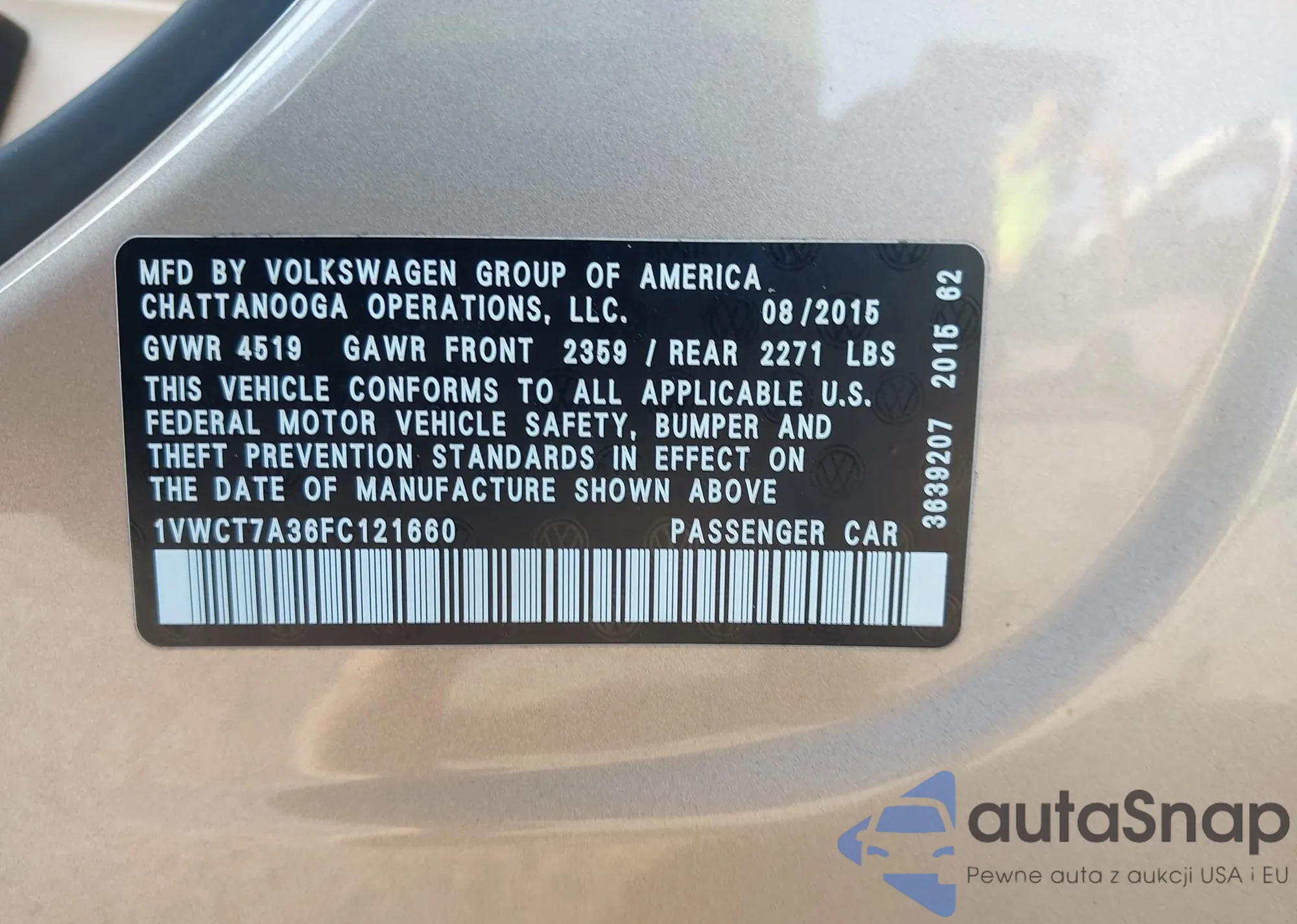 VIN: 1VWCT7A36FC121660