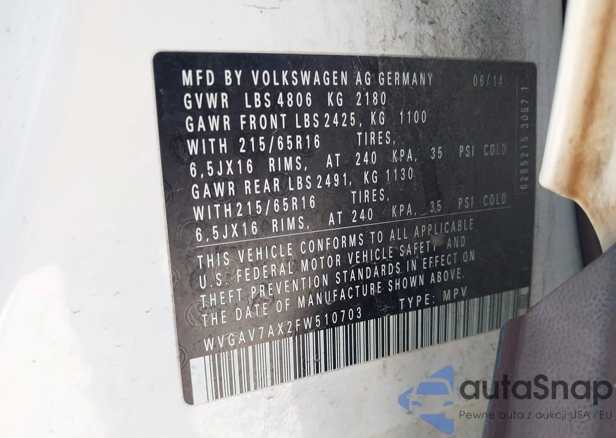 The car Volkswagen Tiguan 2015 (VIN WVGAV7AX2FW510703) has already been auctioned 1 times and/or is sold by an unverified seller. We recommend checking the Carfax report and confirming registration possibilities before purchase.