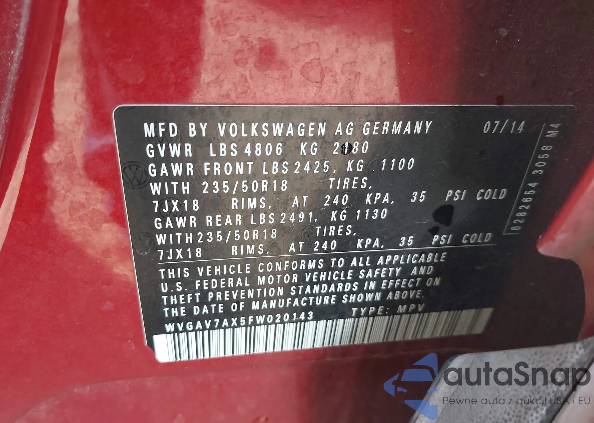 The car Volkswagen Tiguan 2015 (VIN WVGAV7AX5FW020143) has not been auctioned before. The documents are clean, and the mileage matches or is below the market average. Sold by an insurance company – we recommend purchase. Delivery to the port will take approx. 6–8 weeks.