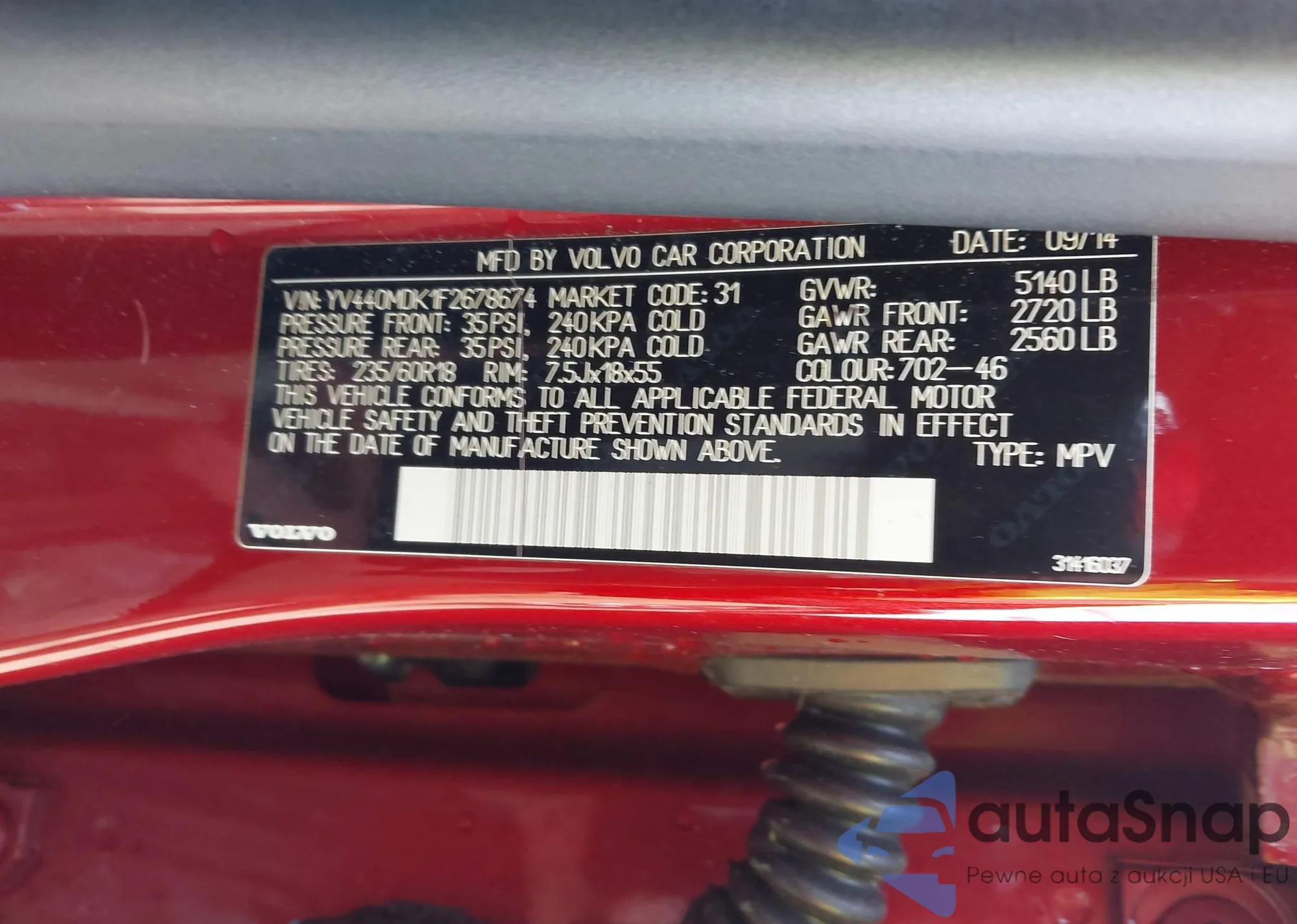 The car Volvo XC60 2015 (VIN YV440MDK1F2678674) has not been auctioned before. The documents are clean, and the mileage matches or is below the market average. Sold by an insurance company – we recommend purchase. Delivery to the port will take approx. 6–8 weeks.
