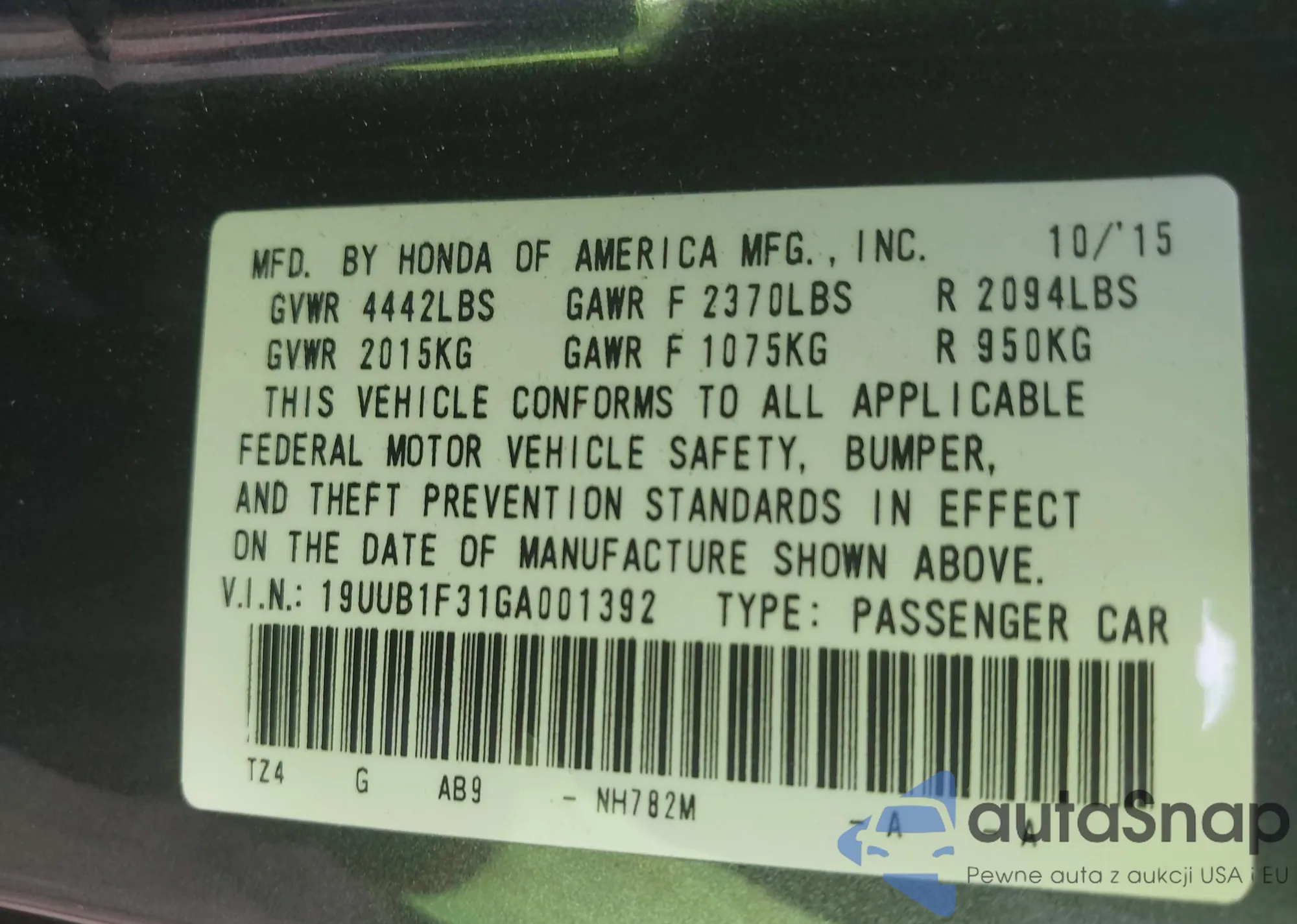 VIN: 19UUB1F31GA001392