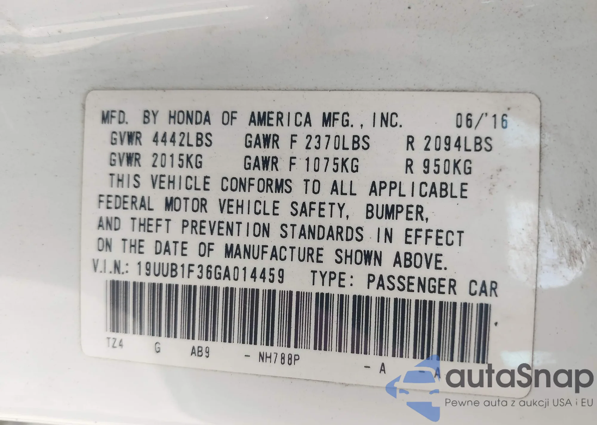 The car Acura TLX 2016 (VIN 19UUB1F36GA014459) has not been auctioned before. The documents are clean, and the mileage matches or is below the market average. Sold by an insurance company – we recommend purchase. Delivery to the port will take approx. 6–8 weeks.