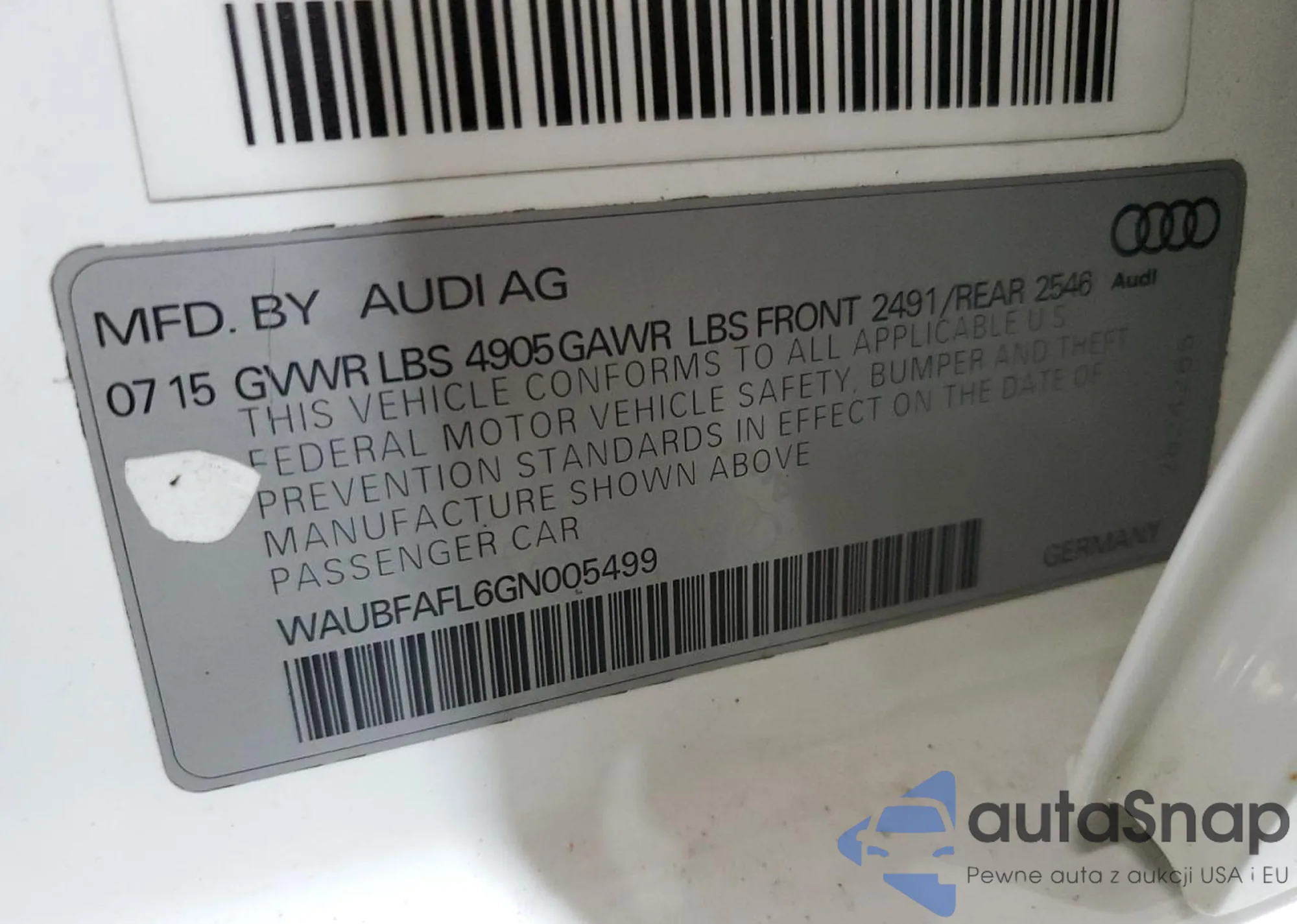 VIN: WAUBFAFL6GN005499